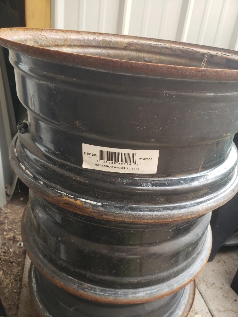 Selling a set of four steel wheels. They are size of 16x6.5, 5x114.3. They show some signs of wear and rust.