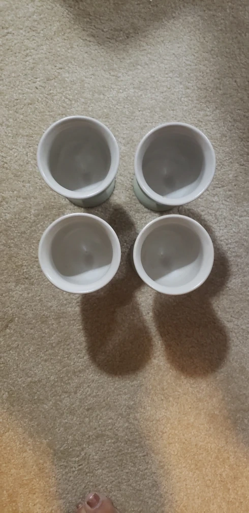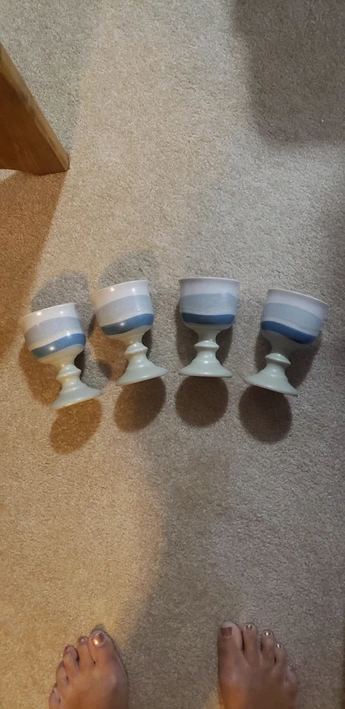 Selling a set of four goblets. They feature a lovely striped design in light blue and white. Perfect for adding a touch of elegance to your table setting! FCFS, located in Millwoods