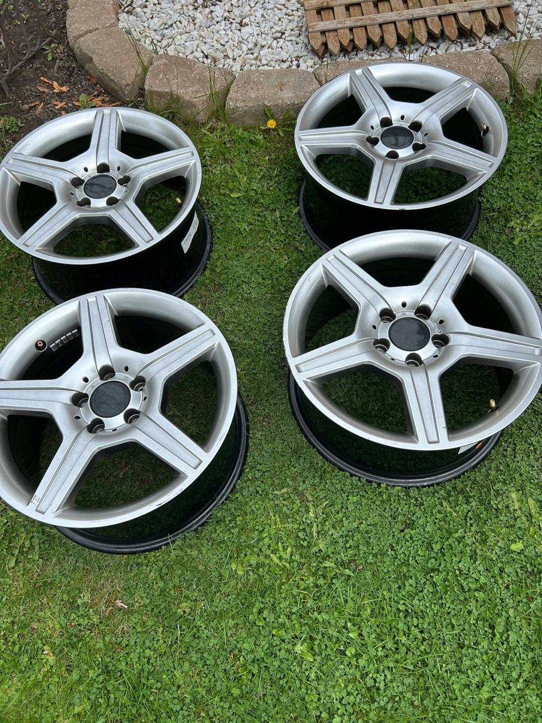 Four used Mercedes-Benz alloy wheels. 17-inch diameter. Some curb rash. Good condition otherwise. For more specifications please see the pictures