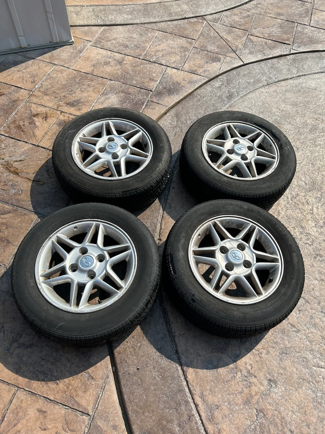 In very good condition the size is 195/65/15. Perfect for any 4 bolt car