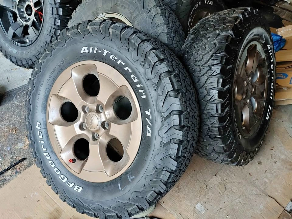 Set of 5 - 265/70R/18 BF Goodrich All-Terrain tires Jeep JK Alloy rims with Tire Pressure Sensor