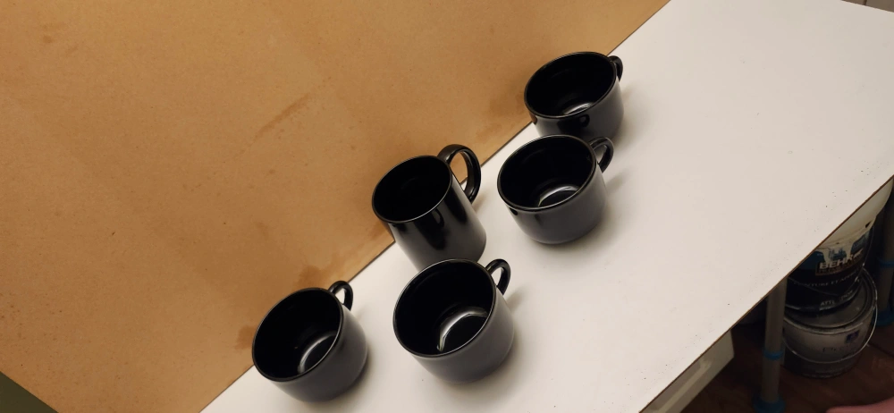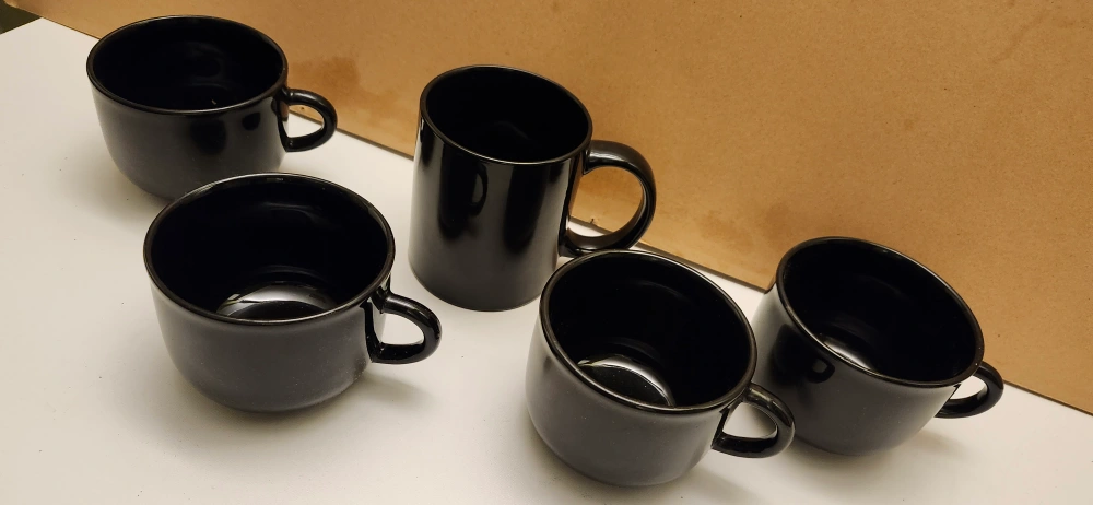 5 black ceramic mugs. Great for coffee, tea, or hot chocolate. Simple design. Perfect for everyday use. price only cash only pickup no delivery. 801 O'Connor drive outside TD Canada Trust bank door.