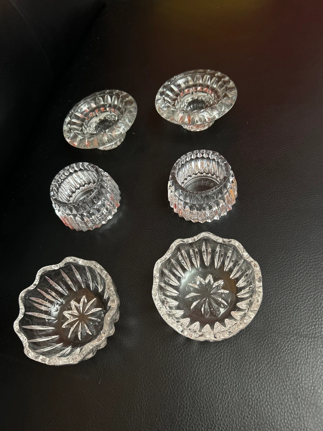 Selling a set of six beautiful crystal glass bowls. These bowls have a lovely design and would be a great addition to any home. They are in great condition and ready for a new home
