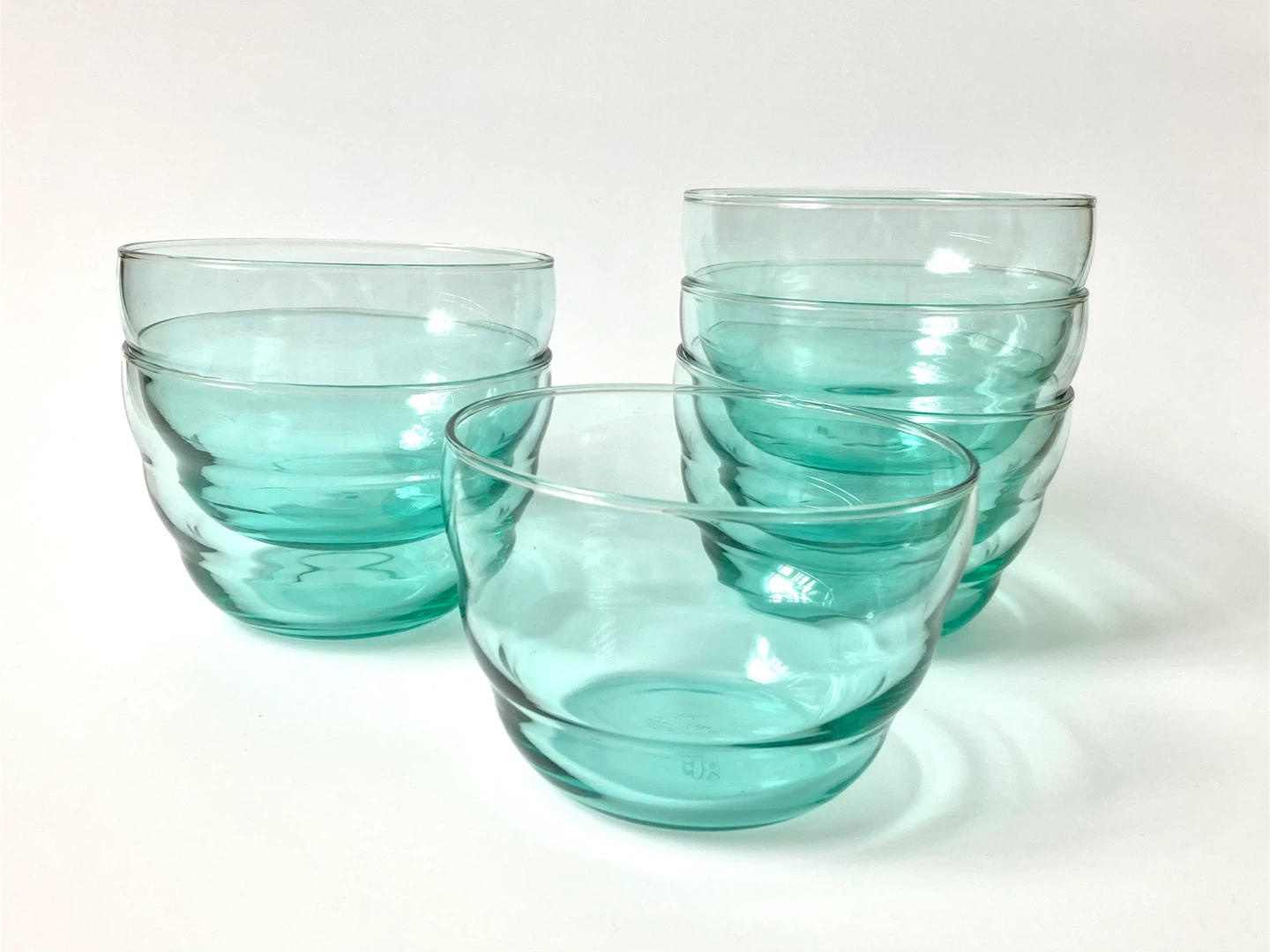 Wonderful set of 6 vintage glass bowls. - Glass is a gorgeous turquoise in a beehive design making them very stackable - Designed by Henrik Preutz for IKEA, made in France - This design was discontinued after around 2000, very rare to find a set of 6 - in excellent vintage condition with just a couple of minor surface scratches - about 4 3/4β diameter at the top, 3β tall Pick up in the Ossington and Davenport area. Please check my other listings for more vintage home decor items π