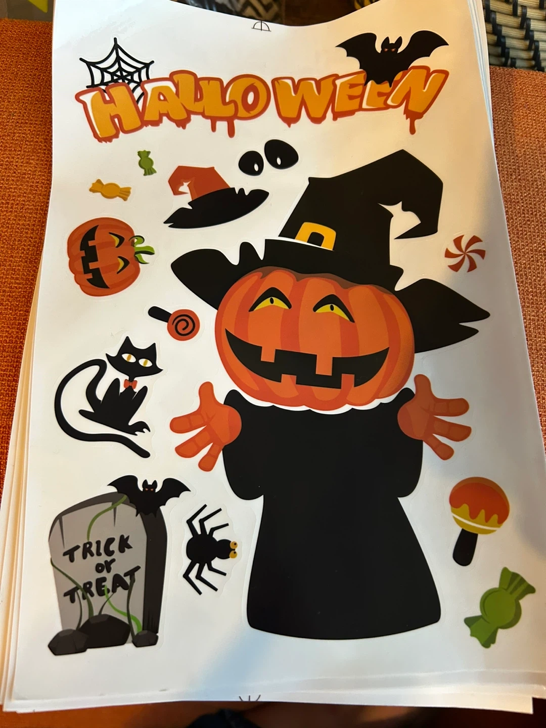 Brand new, found extra sets of Halloween window stickers while decorating for the holidays. Set of 9 pages (not sure on the exact number of actual stickers, but in the range of 100) is being sold as a complete set. Stickers are removable and reusable. Perfect for a bit of cute Halloween fun!