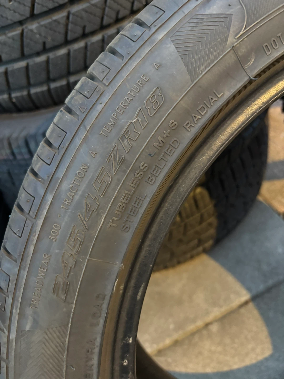 Have a set of 4 245/45/18 Antares Ingen-Locus All season tires Date stamp: 2023 Great shape, lots of tread left. About 75% Asking $450.00 Lowballers ignored