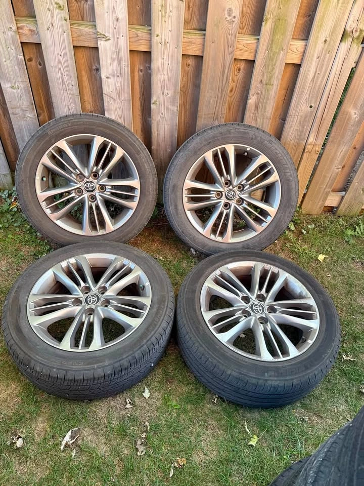 Selling a Set of OEM 17” Toyota Camry Rims on Michelin All Season Tires. 2 tires hav low tread, other 2 has good tread Bolt Pattern 5x114.3 Came off a 2015 Toyota Camry Tire size - 215/55R17 $799 for Set. Pickup in Oakville. Message me for any questions!