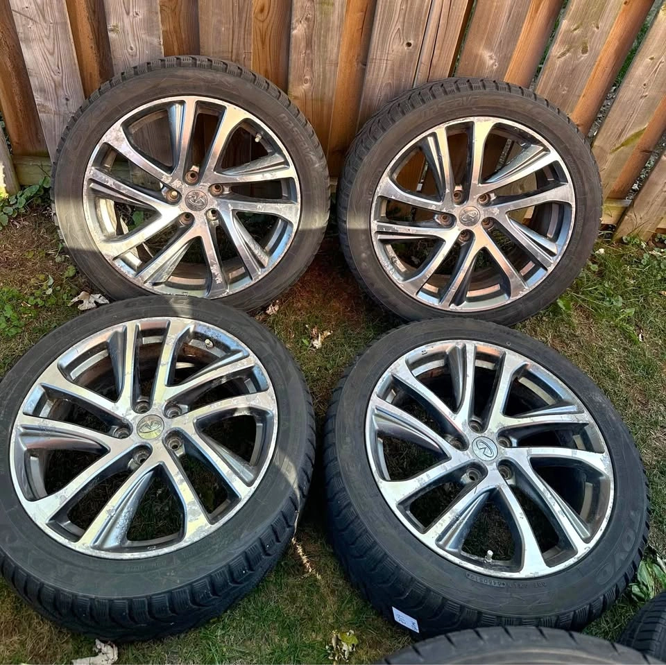 Selling a Set of OEM 19” Infiniti QX50 Rims On Toyo Winter Tires. Tires have decent tread left 245/45R19 Bolt Pattern 5x114.3 Came off 2017 Infiniti QX50 $599 for a Set Pickup in Oakville. Message me for any questions!