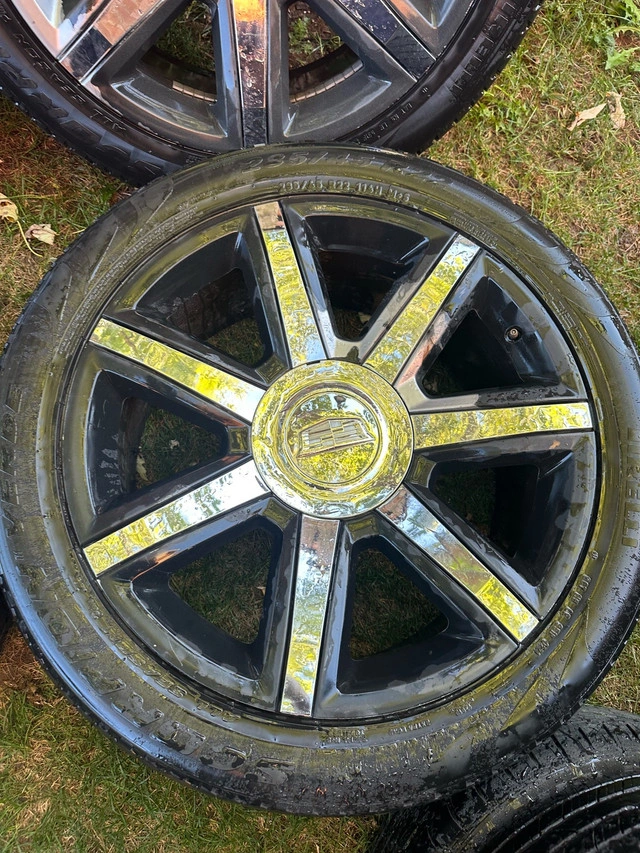 Selling a Set of OEM 22” Cadillac Escalade Rims On All Season Tires. Tire are done, 2 valve stems also need to be changed 285/45R22 Bolt Pattern 6x139.7 Came off 2018 Cadillac Escalade $899 for a Set Pickup in Oakville. Message me for any questions!