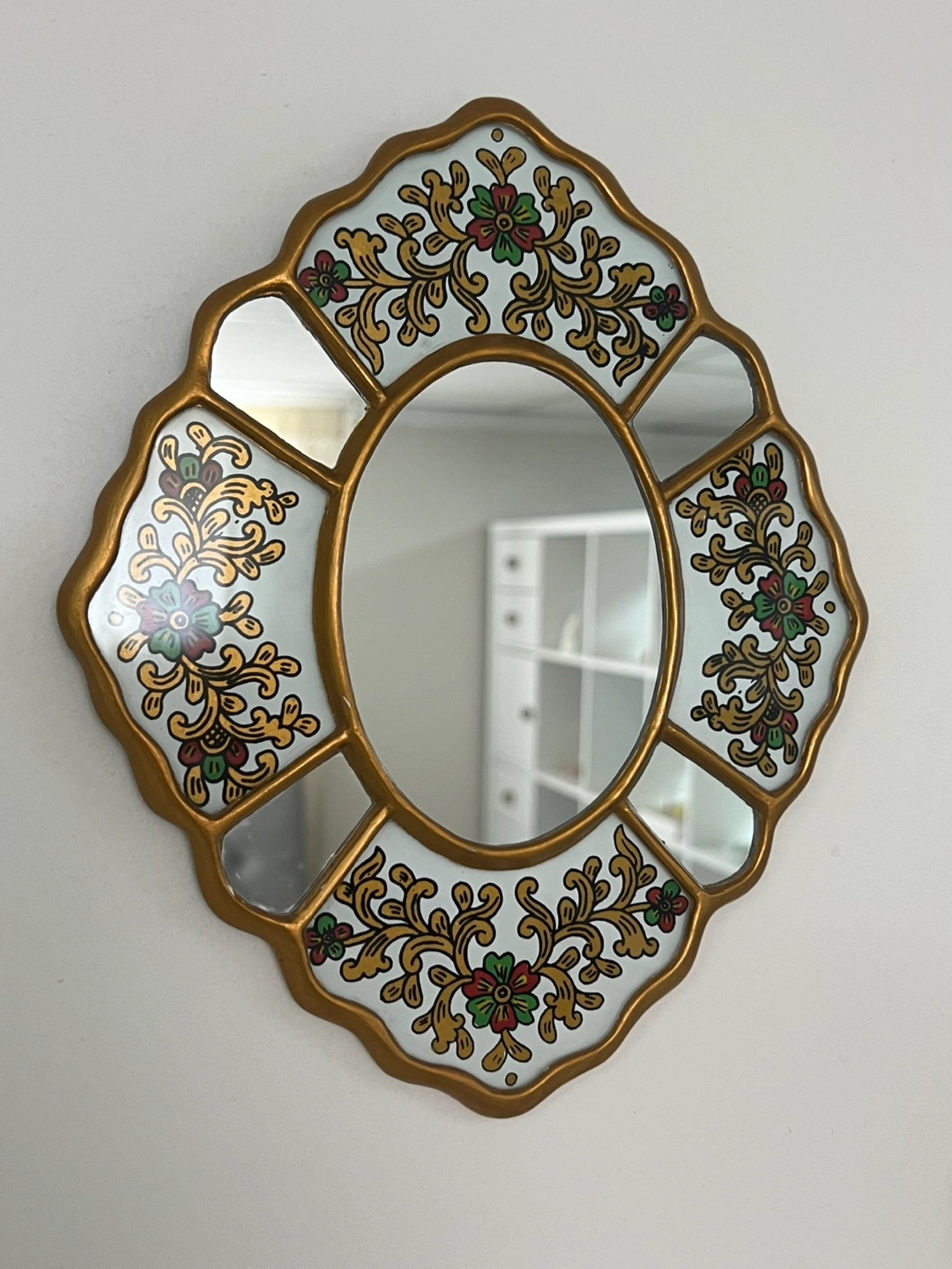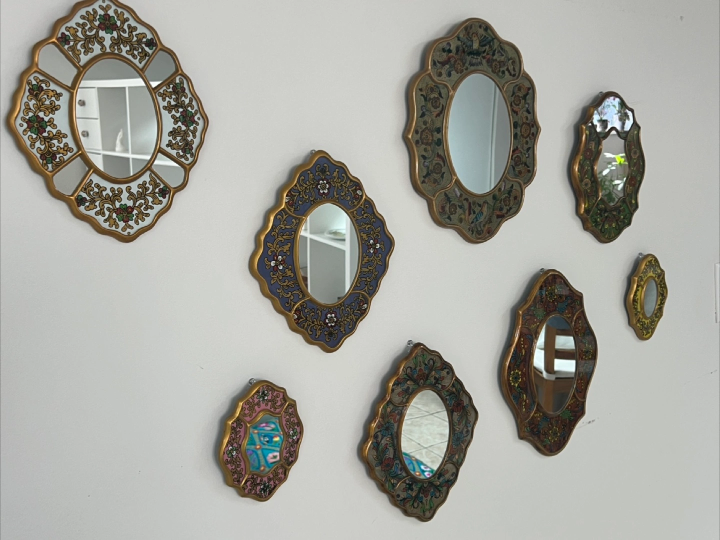 I am selling a beautiful set of decorative mirrors. Each mirror has an ornate design. They are oval or octagonal shaped, with gold frames. Adding a set of these mirrors to a room would surely make your space feel more serene.
