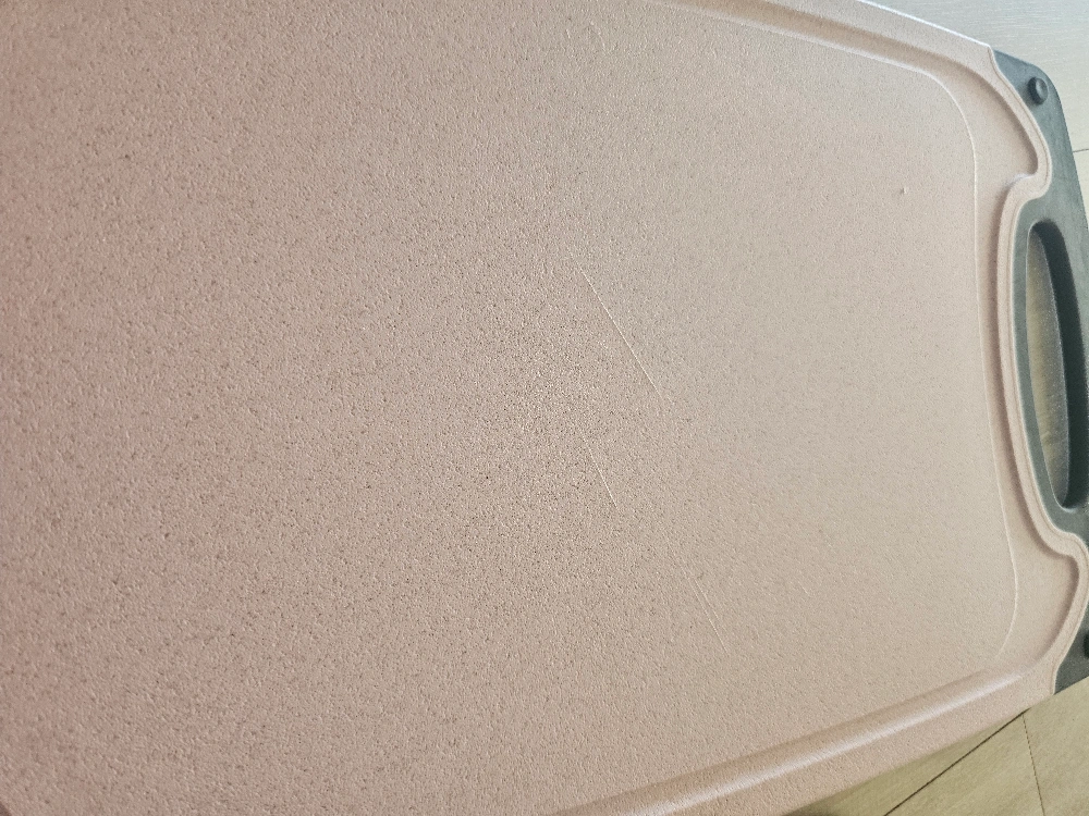 I'm selling a set of two cutting boards. Both are pink with black trim and handles. They look like they are made from a durable material, perfect for any kitchen. You can enjoy your cooking experience with these cutting boards. I used once a big one.
