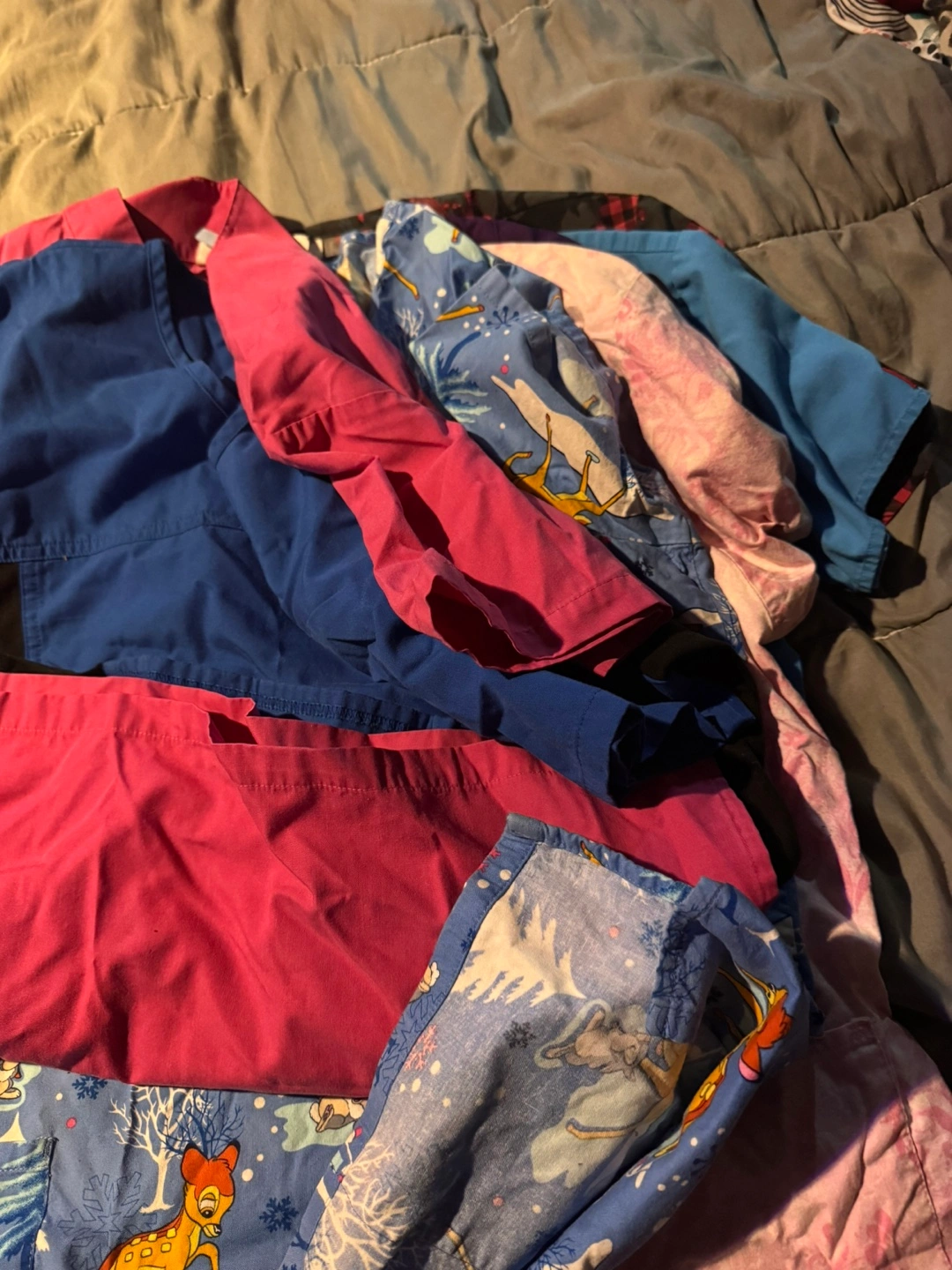 Selling a set of scrub tops, all in good condition. Featuring a variety of colours and patterns. All have pockets. Pickup in New Germany or can meet in Bridgewater.
