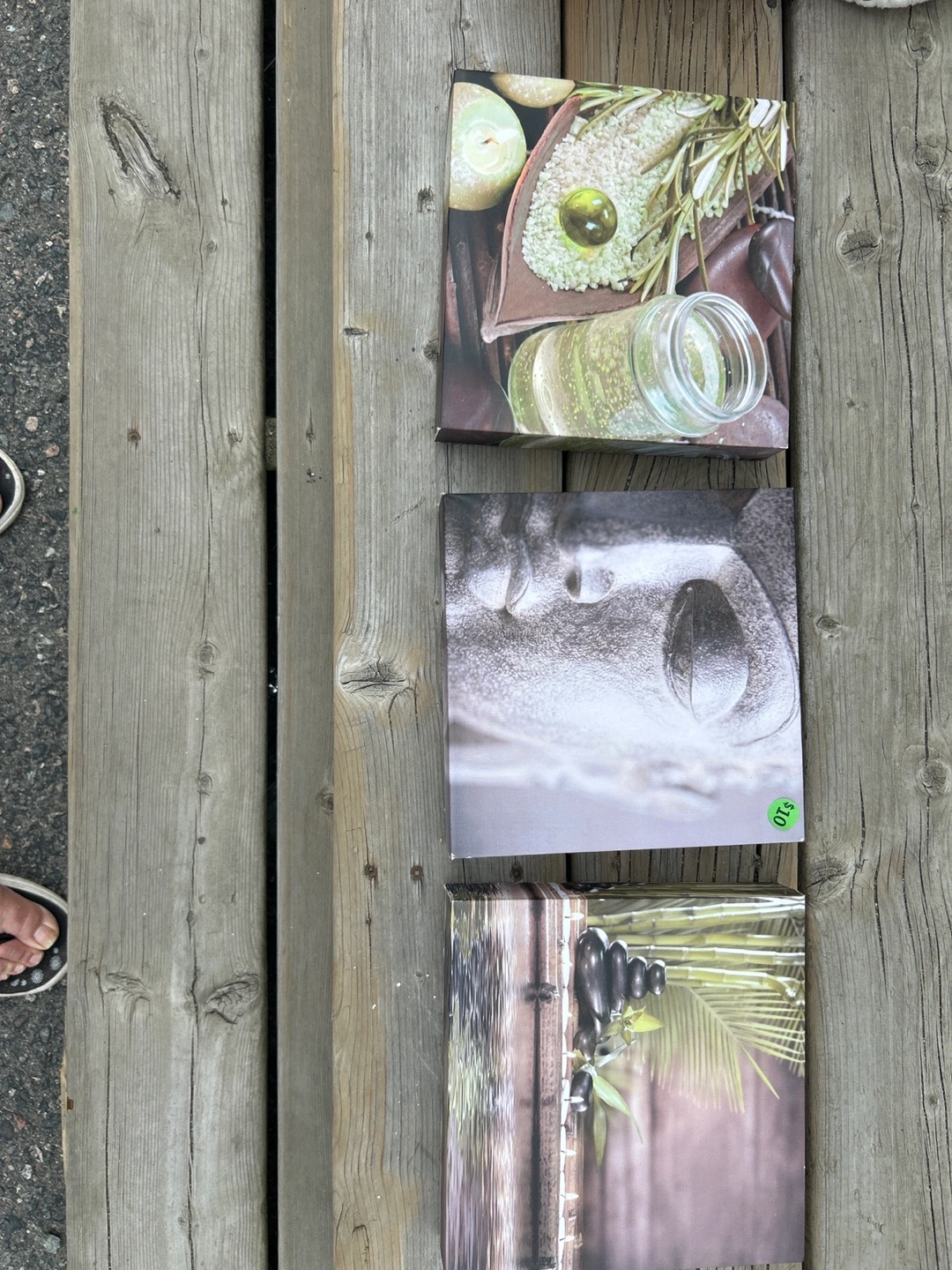 Set of three wall art canvases. Different images. Ready to hang on the wall. A perfect way to bring a peaceful atmosphere to any space.