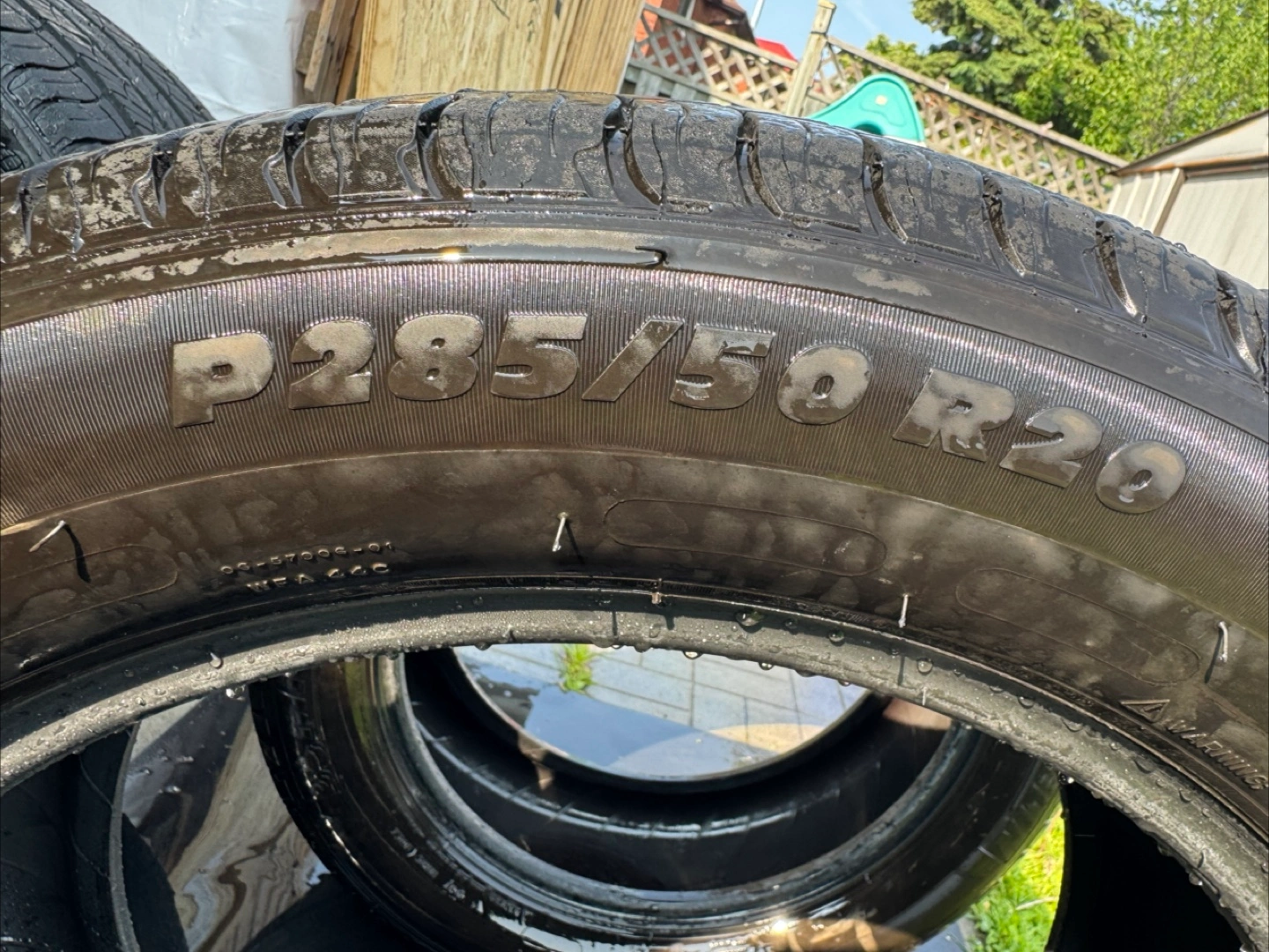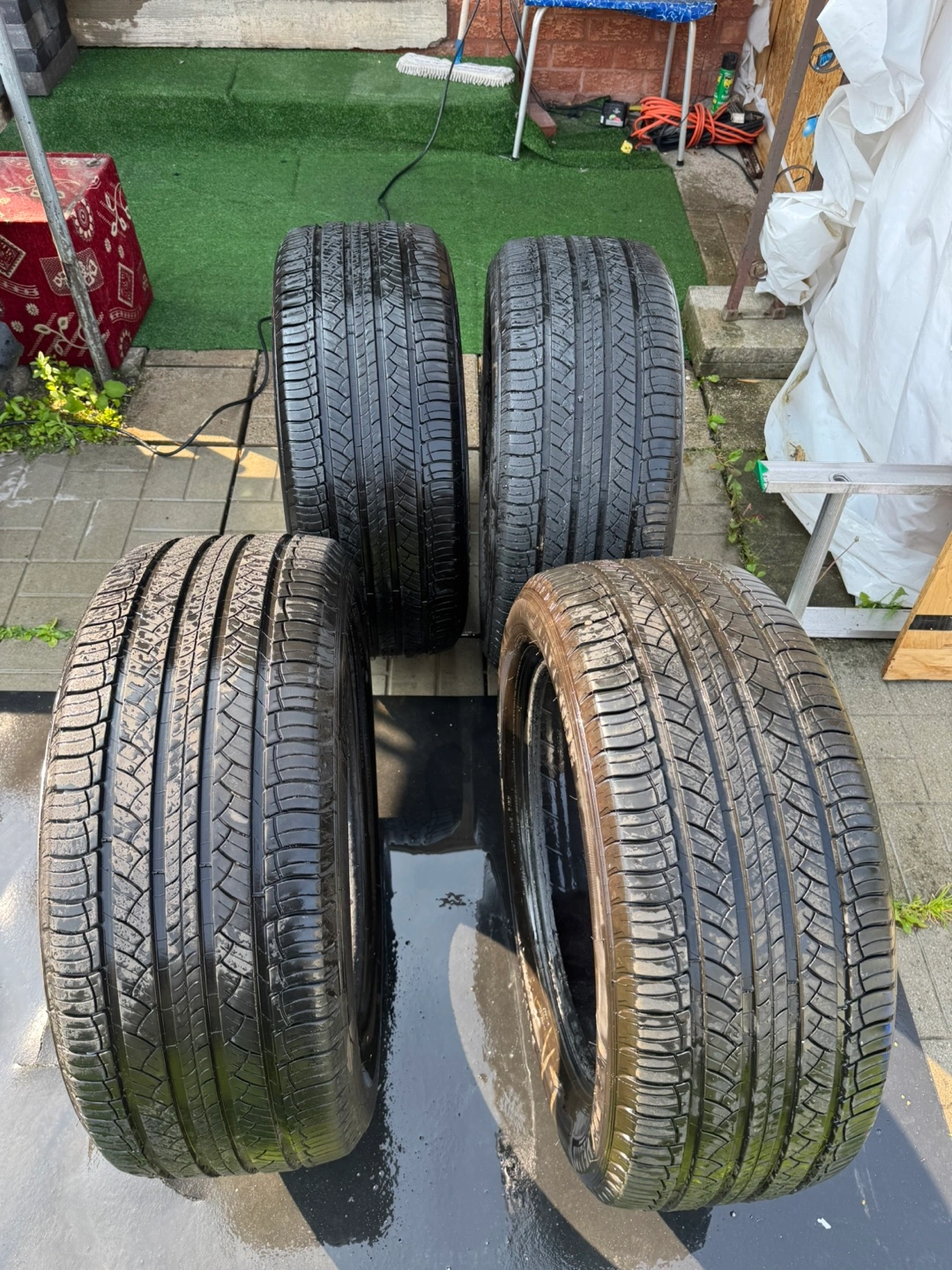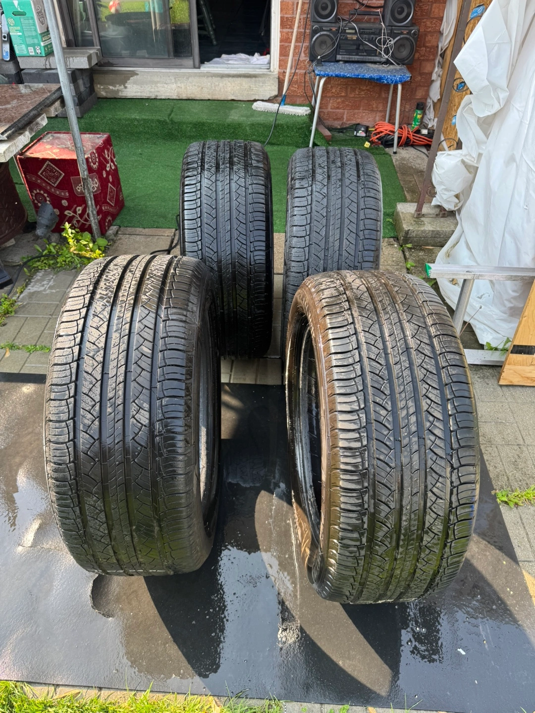 I am selling a set of tires. Tires appear to be in good condition. The tires have a black tread pattern. You can easily add these to your vehicle.