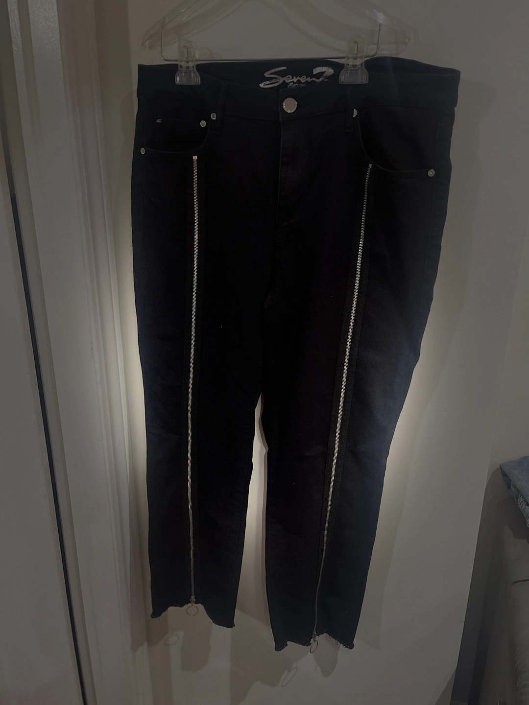 Selling a pair of Seven7 black jeans! They feature a unique zipper detail down the front of each leg. These jeans are in great condition and ready for a new home
