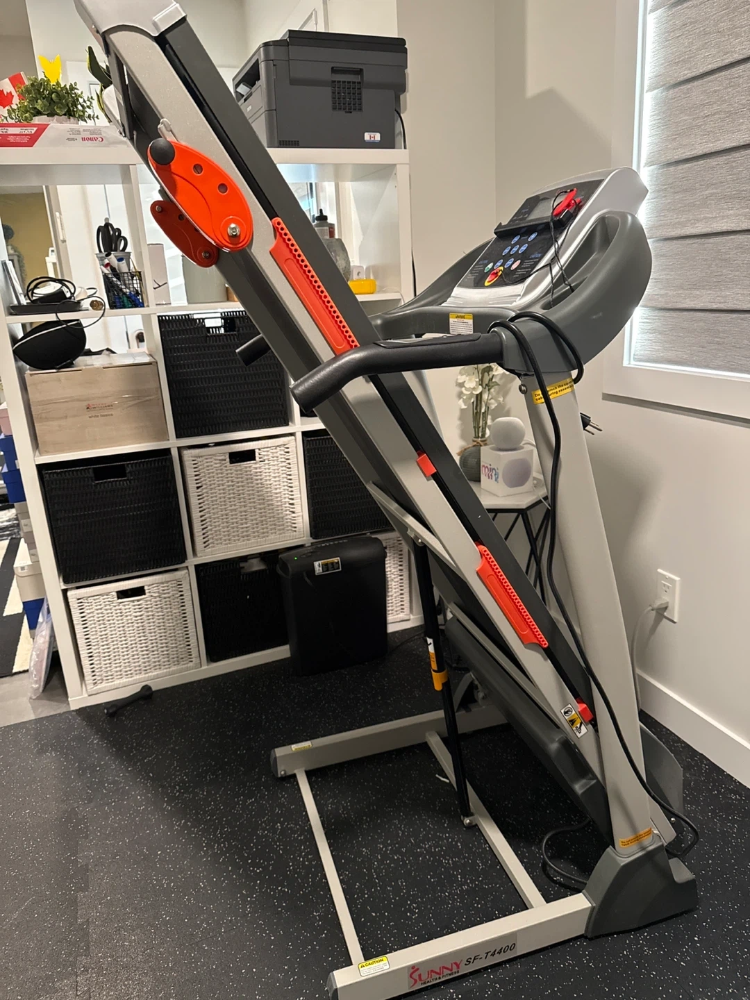 **Get Moving at Home! Sunny Health & Fitness SF-T4400 Treadmill – Compact & Easy to Use** Hi there! I’m selling my Sunny Health & Fitness SF-T4400 treadmill — it’s perfect for walking, jogging, or light running, and fits nicely in smaller spaces! **Why you’ll love it:** - Adjustable incline with 3 levels to switch up your workouts - Speeds up to 9 mph — great for all fitness levels - Compact running surface (49” L x 15.5” W) that folds up easily with a smooth hydraulic system — saves tons of space! - Handy LCD screen shows your speed, time, distance, calories, and pulse - Convenient handrail controls and built-in holders for your phone/tablet and water bottles - Supports up to 220 lbs **Condition:** Used but in great shape, well cared for, user manuals and maintenance lubricant oil included. Asking $250 obo. Self-pick up southside Edmonton. Thank you for viewing.
