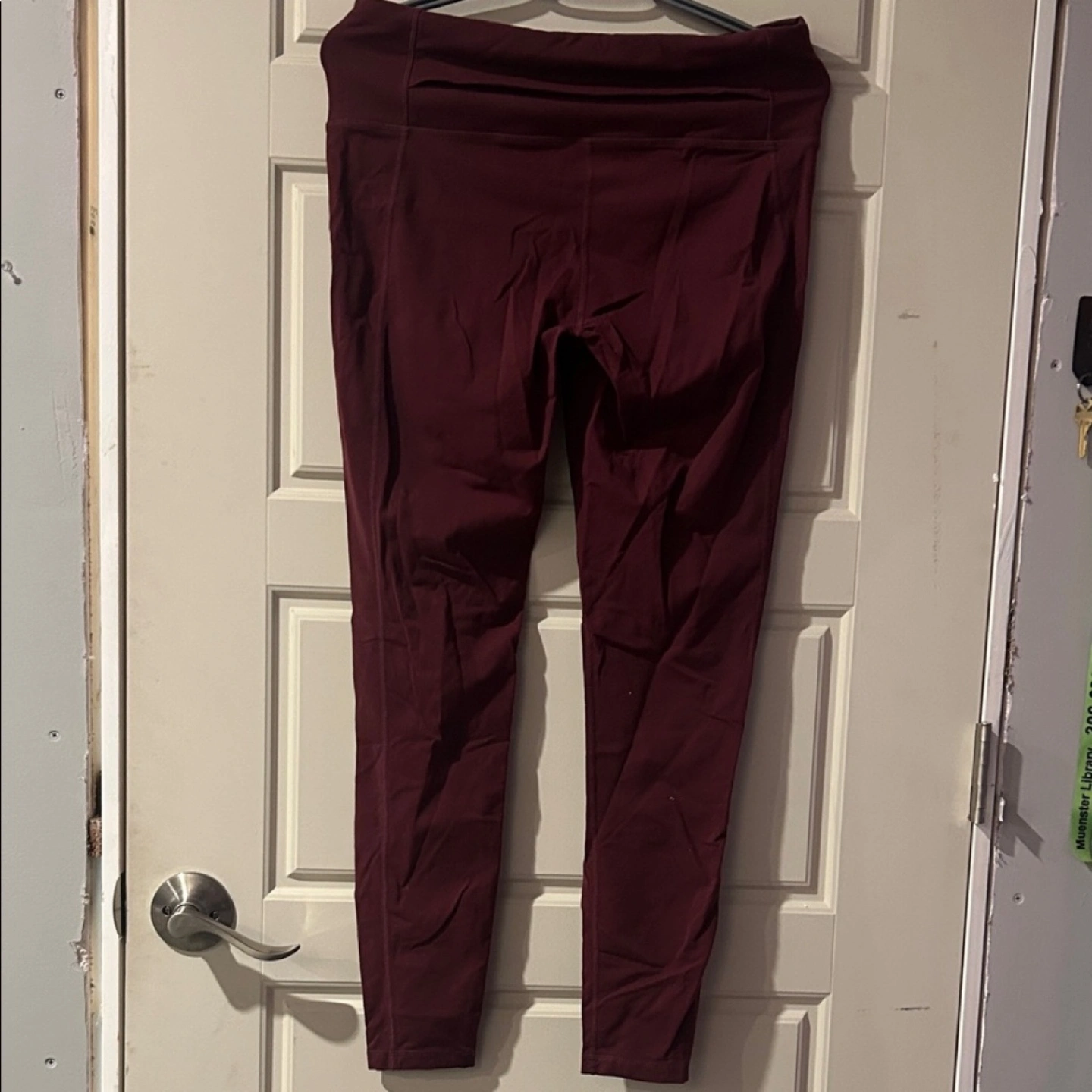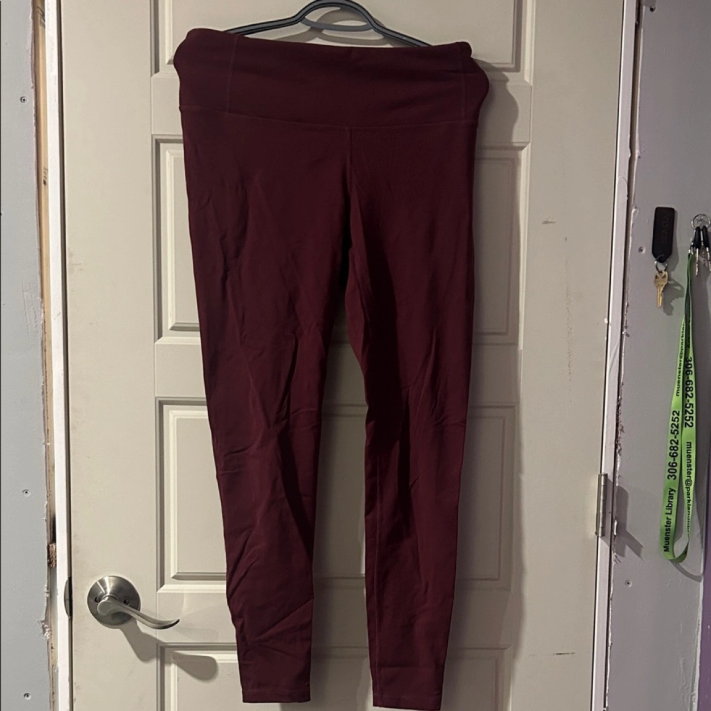 I'm selling a pair of Shambhala leggings in a lovely burgundy colour! They are a size L/G and are in great condition. Perfect for yoga, running errands, or just lounging around the house