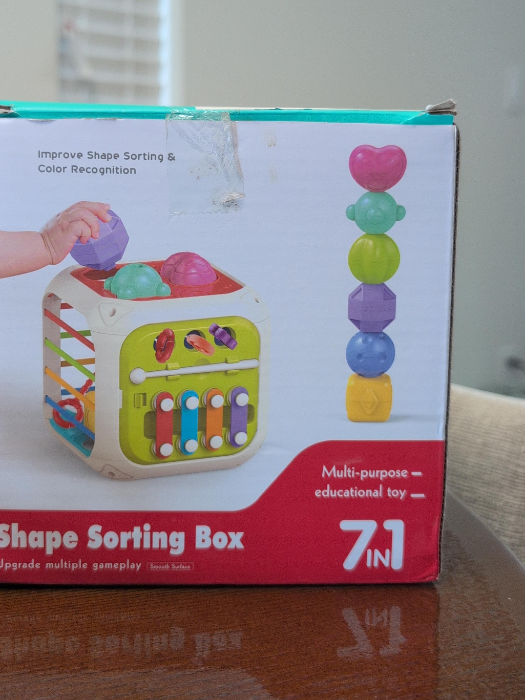 This multi-purpose educational toy is a 7-in-1 shape sorting box. It's great for improving shape sorting and colour recognition, and provides upgrade multiple gameplay with a smooth surface. Perfect for little ones!