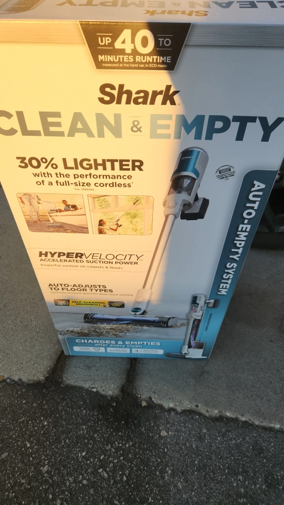 Selling a Shark Clean & Empty cordless vacuum! It's 30% lighter with the performance of a full-size cordless vacuum. It has hypervelocity accelerated suction power, powerful suction on carpets and floors. It also auto-adjusts to floor types. It charges and empties automatically into the auto-empty system. Enjoy up to 40 minutes of runtime measured at the hand vac in ECO mode!