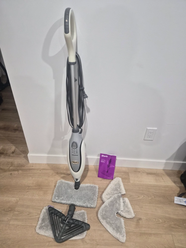 Selling a Shark Steam Pocket Mop in great condition! It comes with multiple mop heads and the instruction manual. This mop is perfect for cleaning hard floors quickly and efficiently. It's lightweight and easy to maneuver. Great for keeping your floors sparkling clean