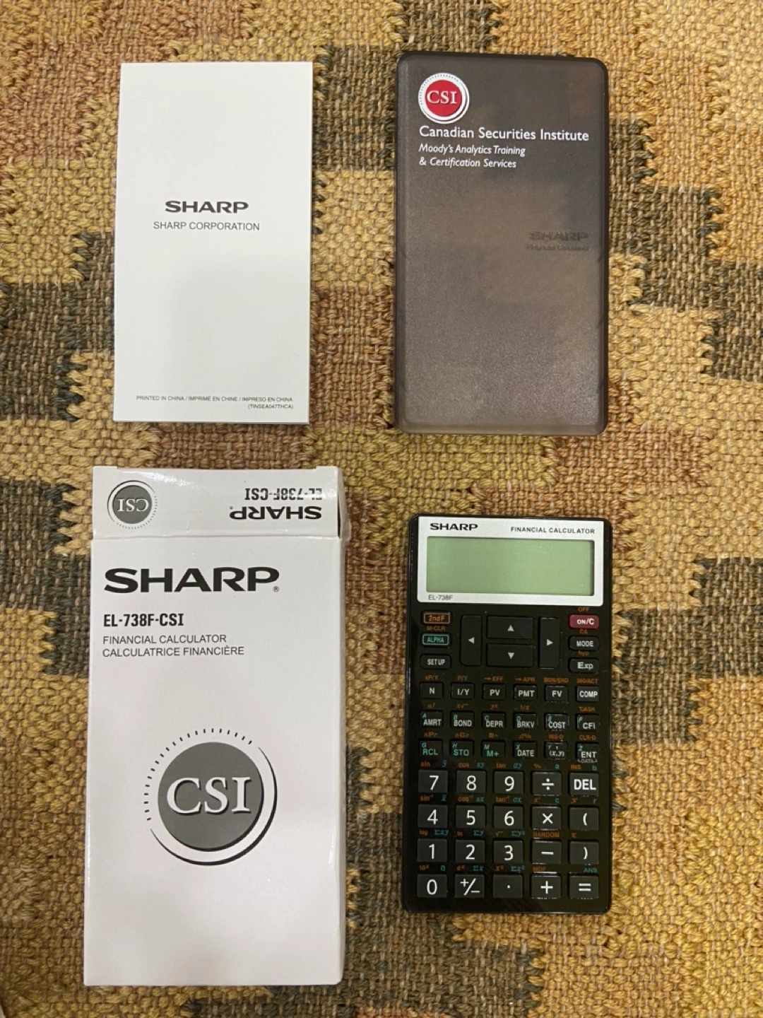Sharp financial calculator, model EL-738F-CSI. Includes original packaging and protective case. Brand New - Never been used. Original price $50. Offers welcome! CASH ONLY!