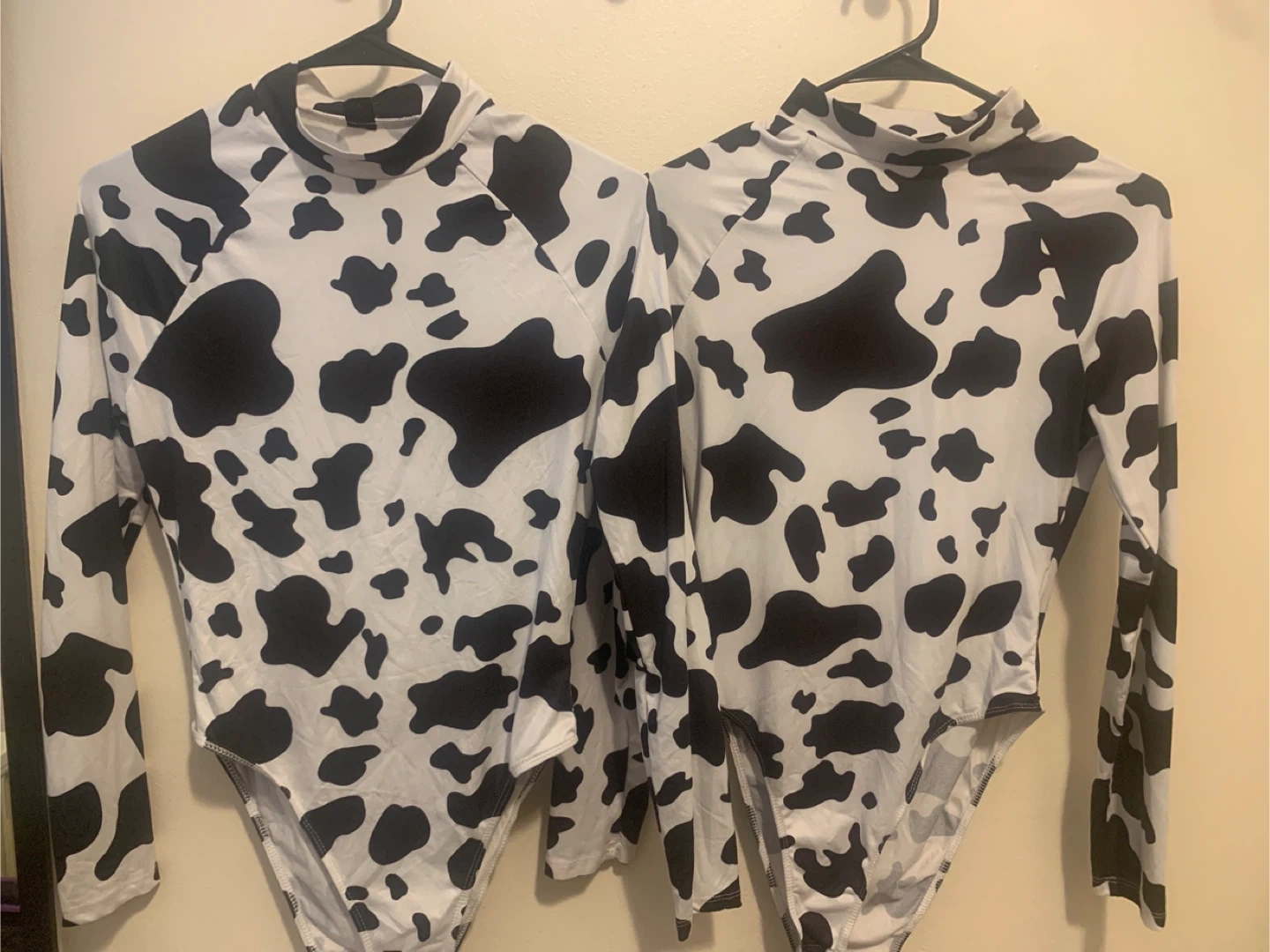 Two SHEIN Bodysuit with a cow print pattern! Fit size S/M and in great condition. Perfect for adding a fun touch to you and your BFF outfits this Halloween 🎃