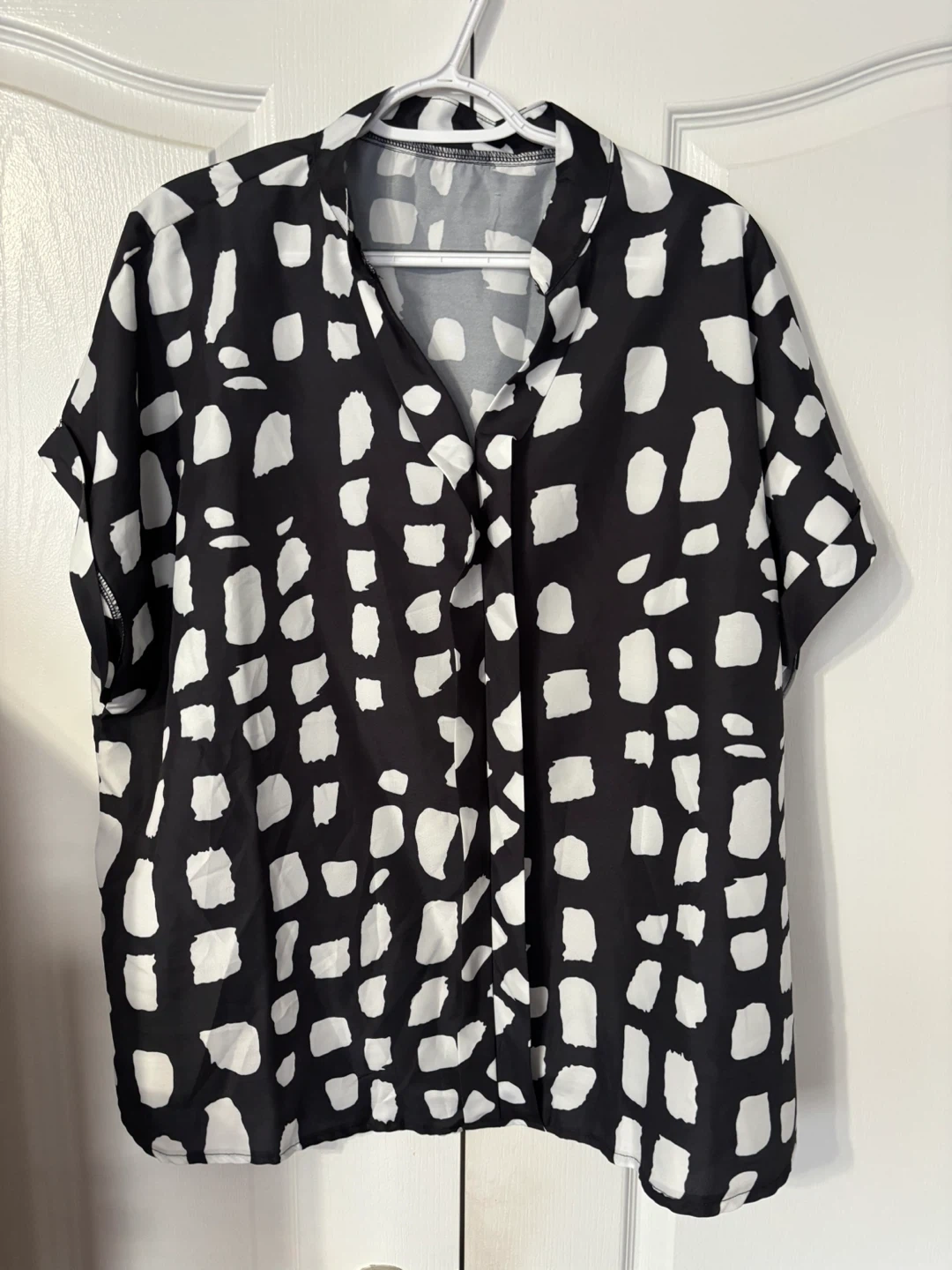 Shein Curve blouse in size 3XL. Black and white pattern Short cap sleeves made of 100% polyester BRAND NEW NEVER WORN
