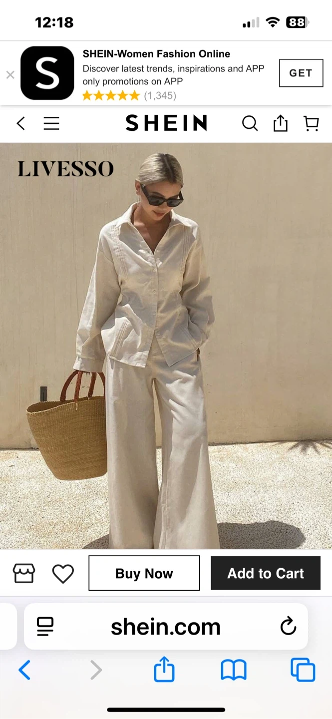 Selling a brand new SHEIN LIVESSCO women's two-piece set! It's a stylish and comfortable outfit, perfect for any occasion. The set includes a long-sleeved button-down shirt and wide-leg pants, both in a neutral colour. It's made from a lightweight material, making it ideal for warmer weather