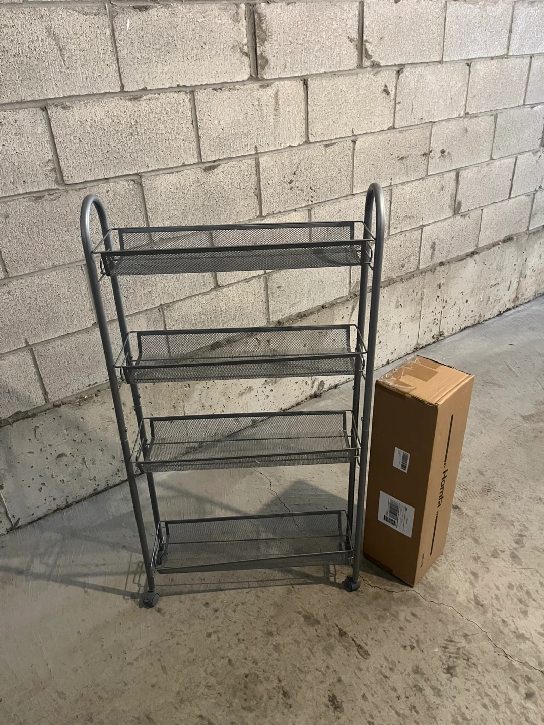 Selling a grey shelf unit! It's on wheels, making it super easy to move around. This shelf unit is great for adding some extra storage space in a small area. Comes with the original box 2 units