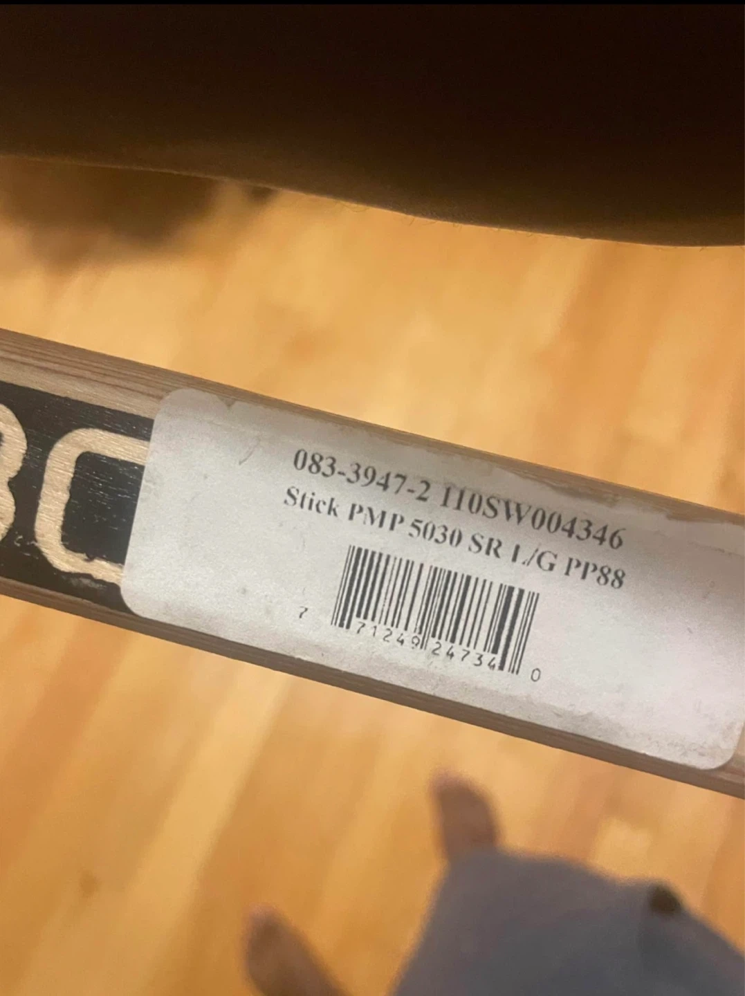 Selling a Sher-Wood 5030 PHP hockey stick. The label shows 'Stick PMP 5030 SR L/G PP88'.