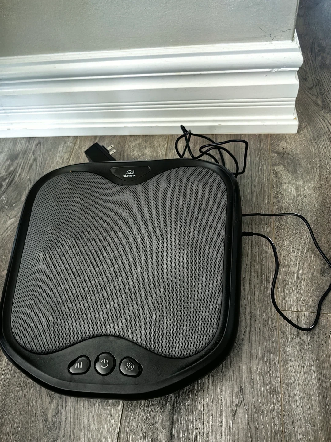 Looking to unwind after a long day? This Shiatsu foot massager by SNAILAX could be just what you need! It's in great condition and ready to help you relax those tired feet. It features shiatsu massage and heat functions to melt away stress and tension. Give your feet the pampering they deserve!