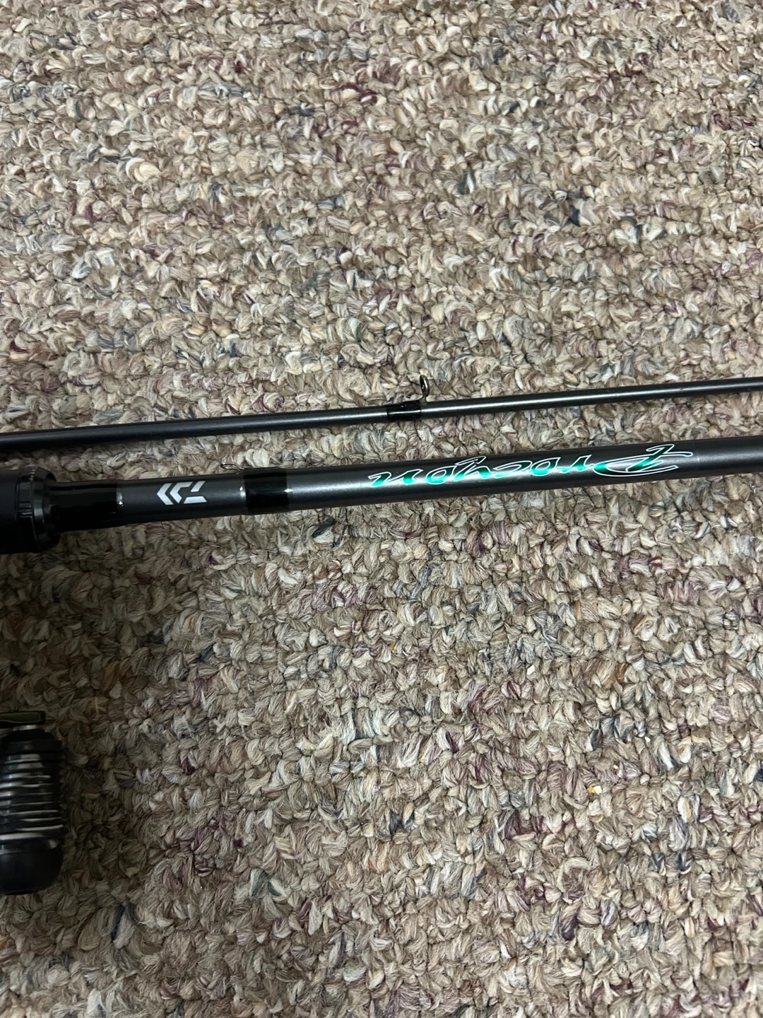 Selling a Shimano 150HG baitcasting reel paired with a Daiwa rod. The rod is a PCYN732MHFB 7'3" MH with a cast weight of 1/4-1oz and line 10-20lb. Great setup for fishing! Asking $250 cash