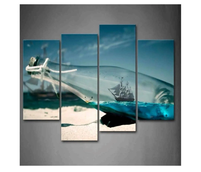 Add a touch of nautical charm to your space with this captivating four-piece canvas art set, showcasing a ship in a bottle. The artwork features a serene ocean scene, bringing a sense of adventure and tranquility to any room. The canvas pieces come ready to hang, making it easy to transform your living room, bedroom, or office into a personal gallery. Specifications: * Type: Canvas Print * Subject: Ship in a Bottle * Number of Pieces: 4 * Condition: Used- Good This unique piece is priced to sail quickly at $65. If the ad is still floating, the artwork is available for your taking!