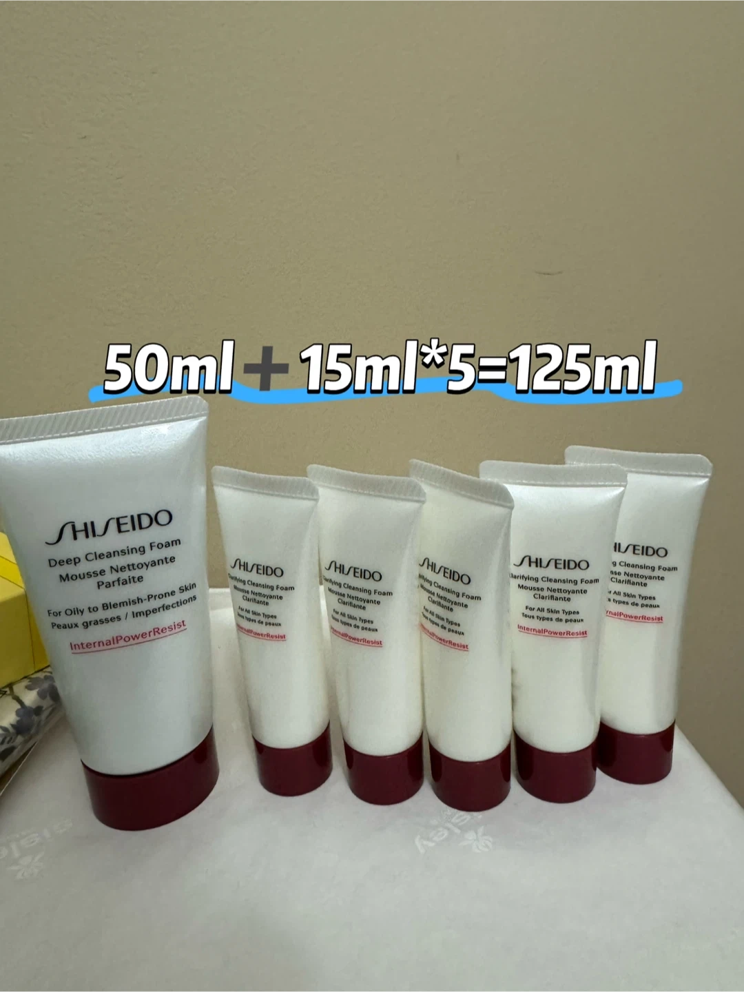 Selling a set of Shiseido Deep Cleansing Foam! This set includes one 50ml bottle and five 15ml bottles, totaling 125ml. Perfect for oily to blemish-prone skin and all skin types. Get that clean and refreshed feeling!
