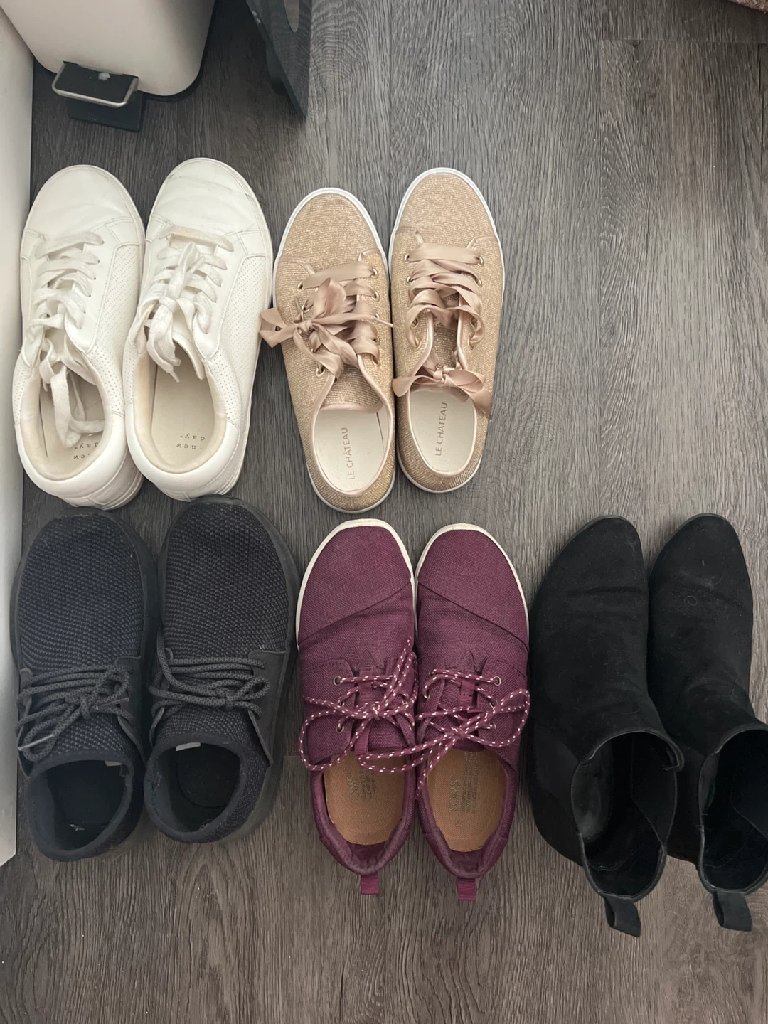 My feet grew during pregnancy 🥴 My loss your gain! Selection of gently used shoes, sizes between 8-8.5 Cute styles from Le chateau Toms Vessis *SOLD Target Each pair $5
