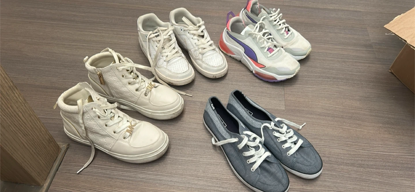 Selling a bundle of women's shoes! Included are: - Michael Kors white high-top sneakers, women's size 6 - Nike white sneakers, women's size 7.5 - Puma sneakers, women's size 7 - Keds blue sneakers, women's size 7New
