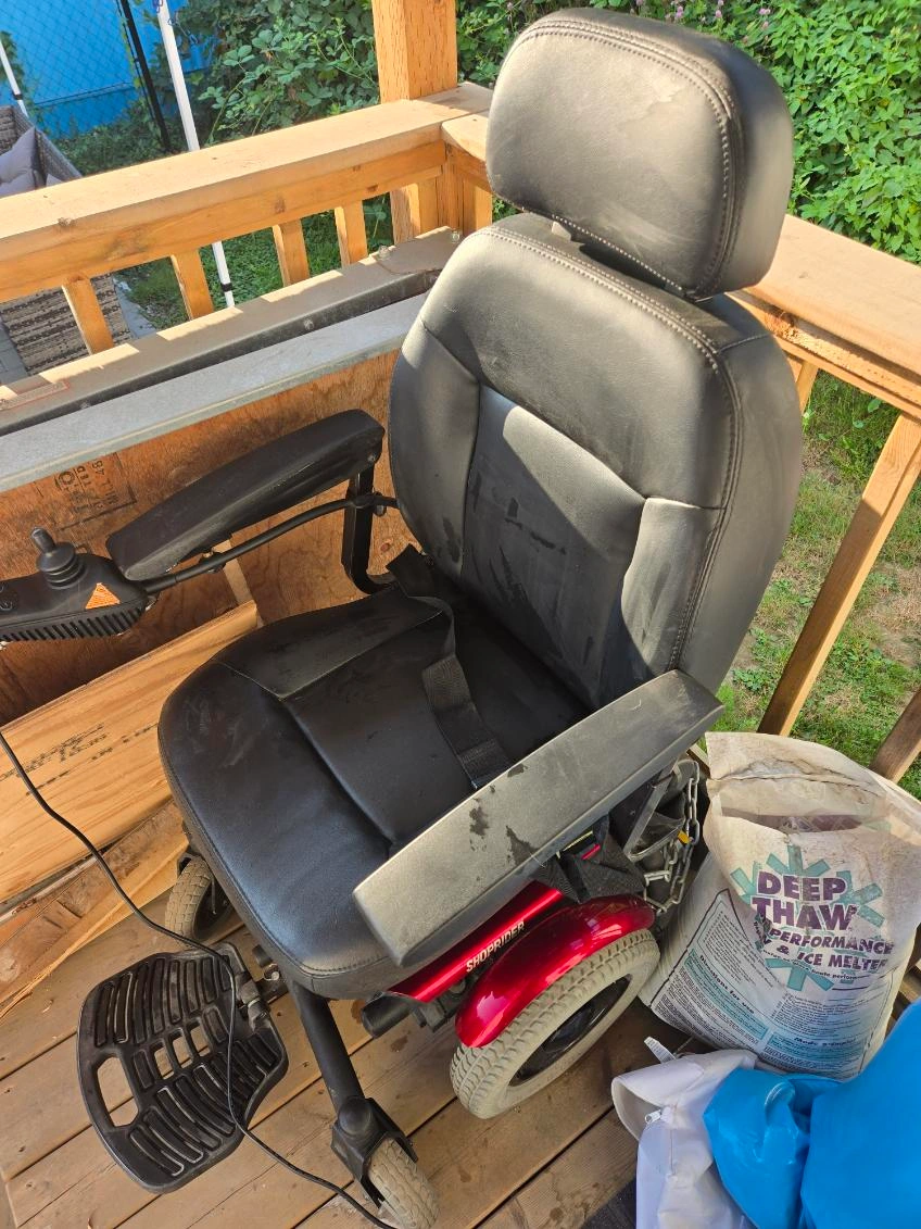 Selling a Shoprider power wheelchair. It shows signs of use. Includes the charger. used no more the 3 times from original owner , and only used 3 times by me. brand new batteries when purchased in 2024.