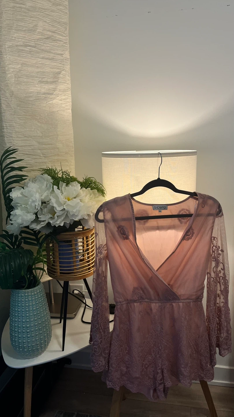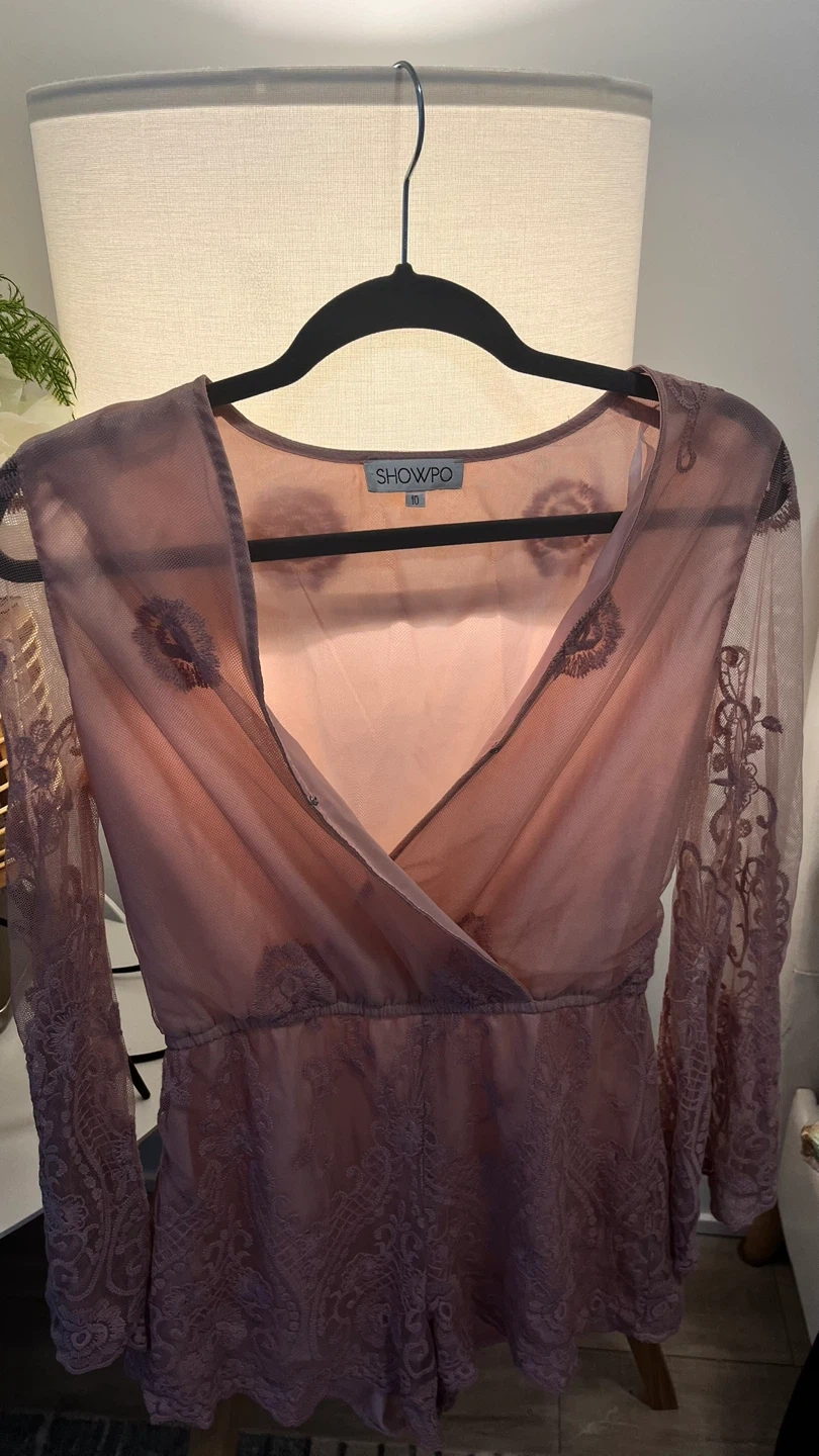 Selling a cute Showpo romper in size 10! The brand is Australian. It's a light pink colour with delicate lace detailing. Perfect for a birthday or a night out. In great condition and ready for a new home! I bought it for $70 plus.