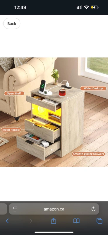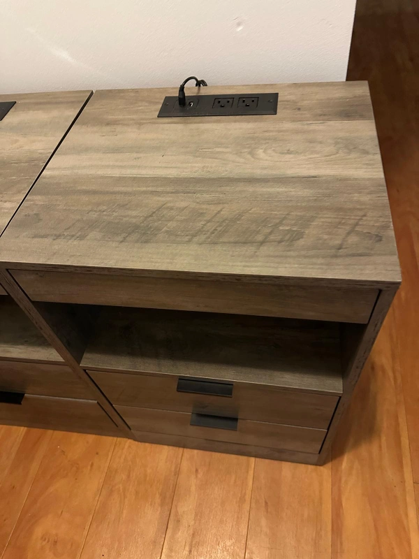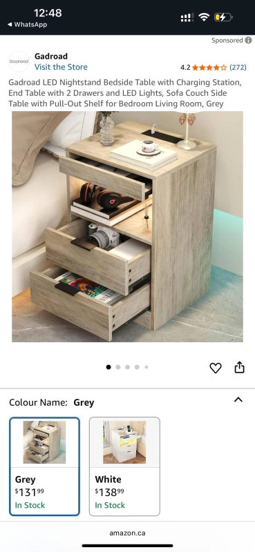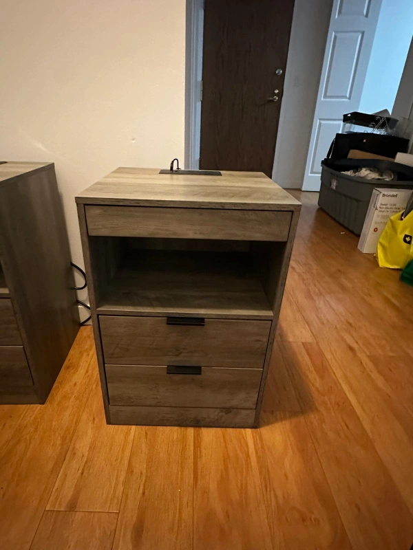Selling a Gadroad nightstand in grey! It is in perfect condition, has two drawers, LED lights, and a charging station. It's perfect as a bedside table or a sofa side table. It also has a pull-out shelf! Bought at $175 each. Asking Price : $125 each, both for $240. Pick up on West 8 Ave Only.