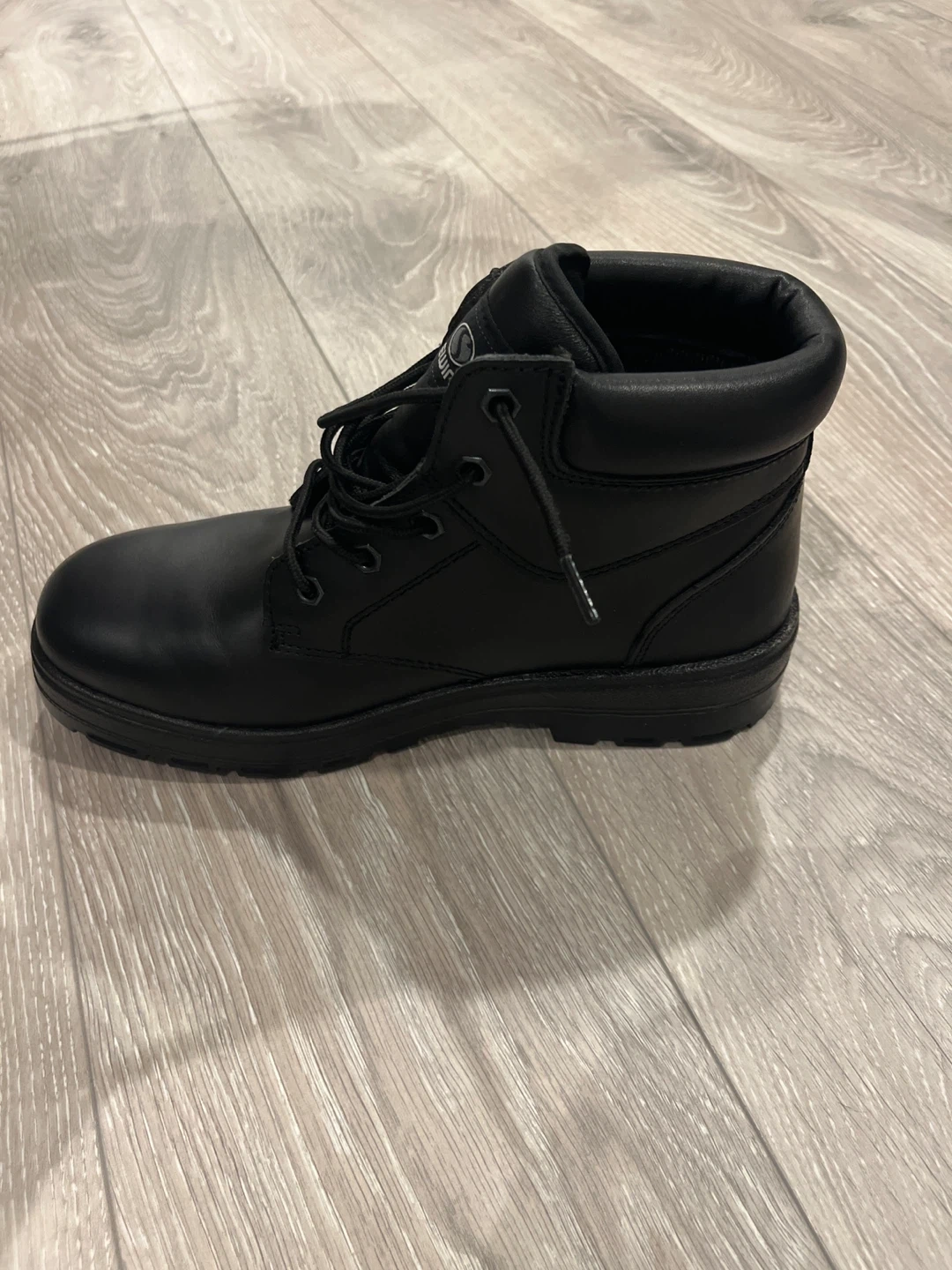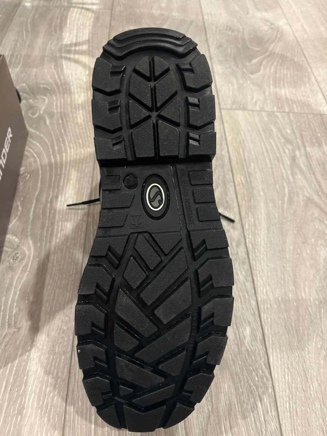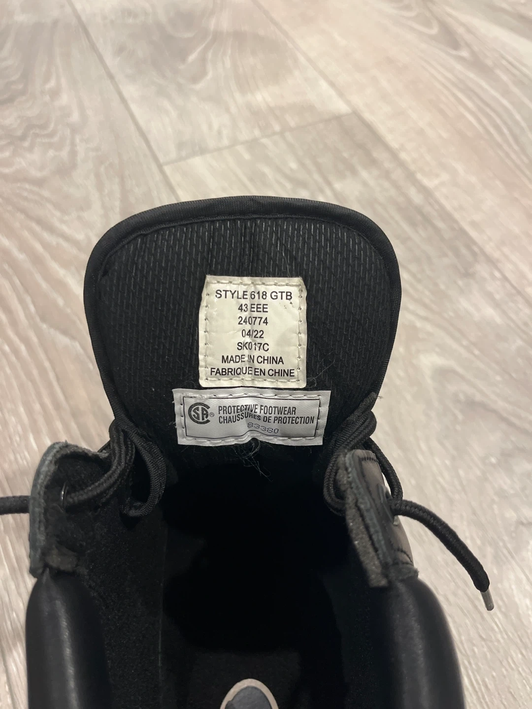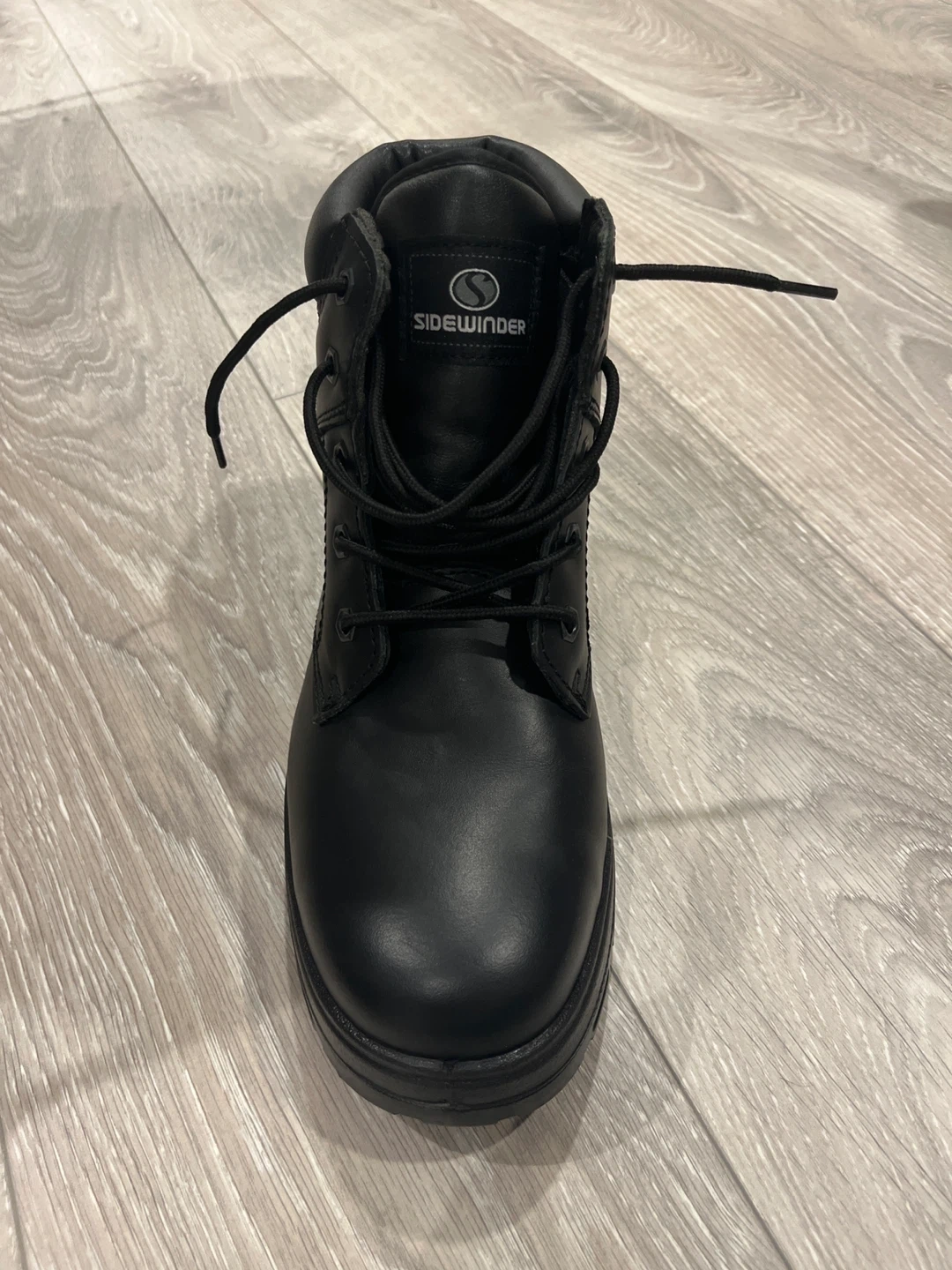 Selling a pair of Sidewinder work boots in black. They are a size 43 EEE. These boots are made in China and feature protective footwear with slip and oil resistant soles.