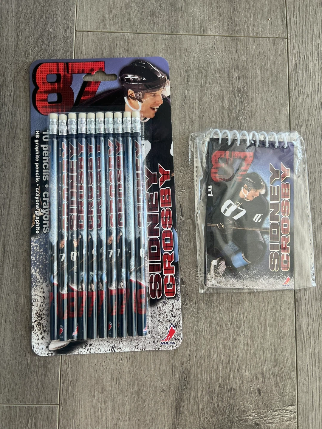 Brand new Sidney Crosby NHLPA pencils and notepad set! Great for any hockey fan or student. The set includes 10 HB graphite pencils and a small notepad featuring Sidney Crosby