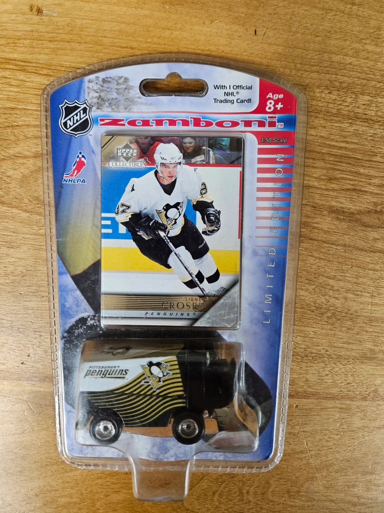 Upper Deck Sidney Crosby rookie card with Pittsburgh Penguins Zamboni brand new and sealed.