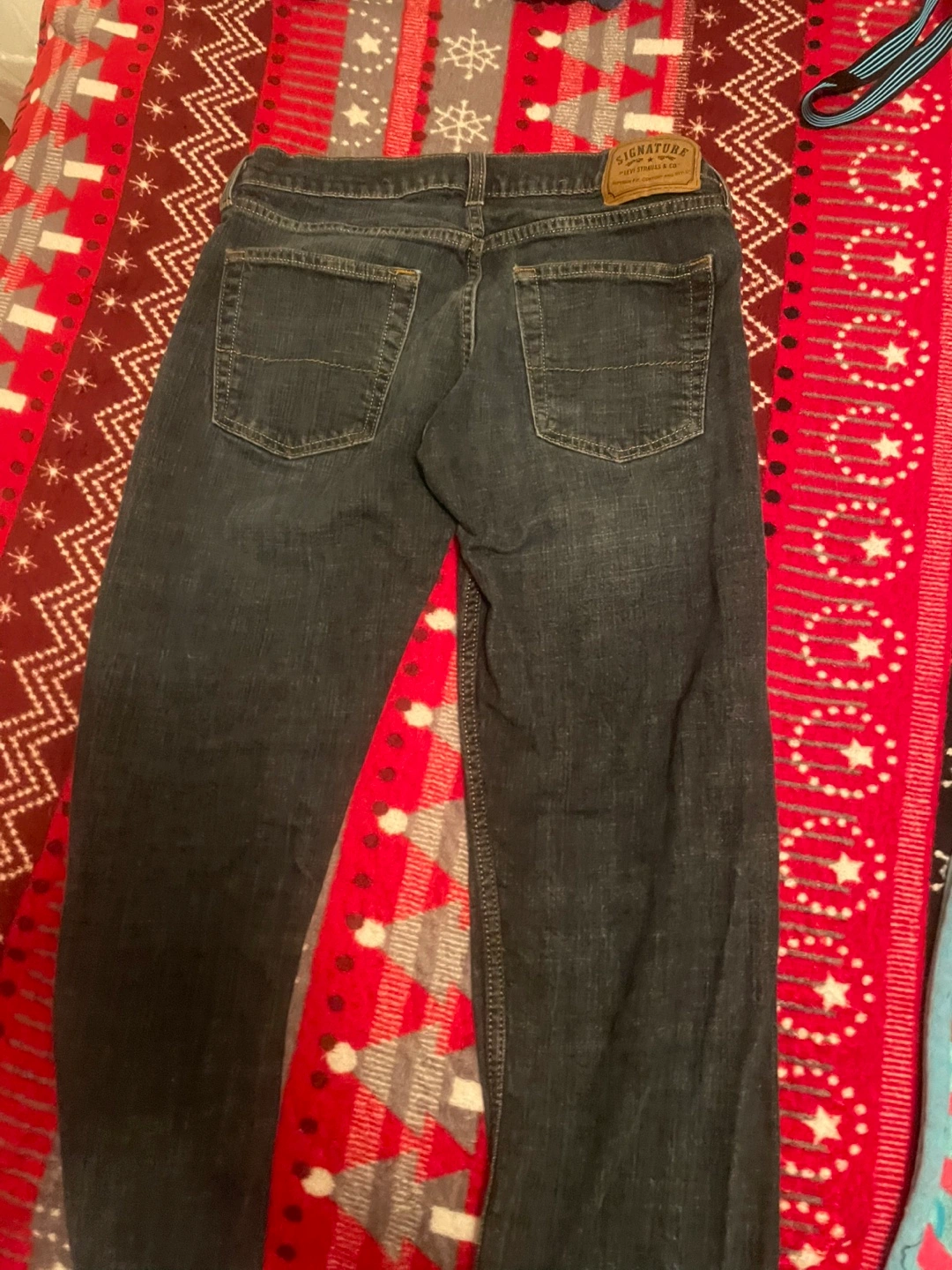Signature Levi Strauss & Co. jeans in size W32 L34. Straight style, dark wash denim. Good condition and ready for a new home