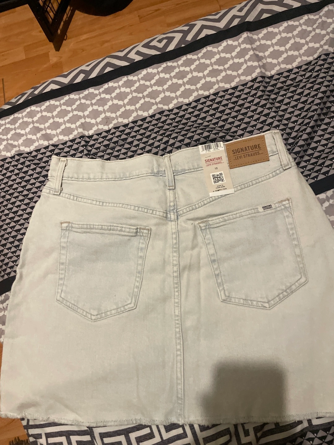 Selling a Signature by Levi Strauss denim skirt in a size 10. It's a light wash denim, perfect for summer! The skirt has a classic denim look with front and back pockets. Feel free to reach out if you have any questions!