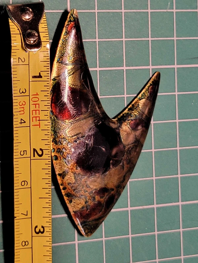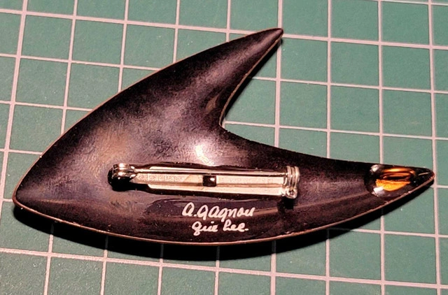 Elevate your accessory game with the A. Gagnon Quebec Bronze & Gold Enamel On Copper Pin Pendant. This exquisite piece is a true testament to Canadian craftsmanship, showcasing a stunning blend of blue and green enamel on a warm copper base. Designed with a refined aesthetic, the pendant exudes a timeless charm that can complement both day and evening ensembles. With a classic length of 3 inches, this pin pendant is versatile for various clothing and jewelry displays. It bears the distinctive signature of A. Gagnon, assuring its authenticity and artistry. Whether you're adding to your collection or gifting someone special, this piece is sure to captivate with its intricate details and elegant presentation.