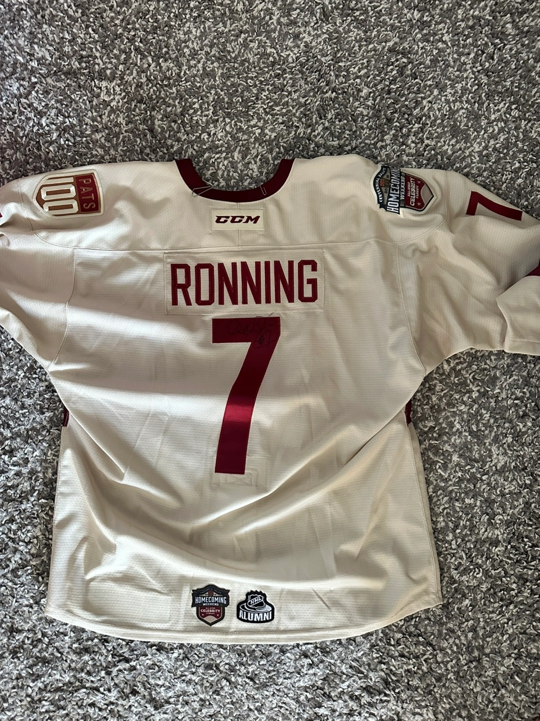 Selling a Cliff Ronning #7 jersey It's a size 52 and features the Centennial Salute 2018 Homecoming Weekend patch. Great for any hockey fan!