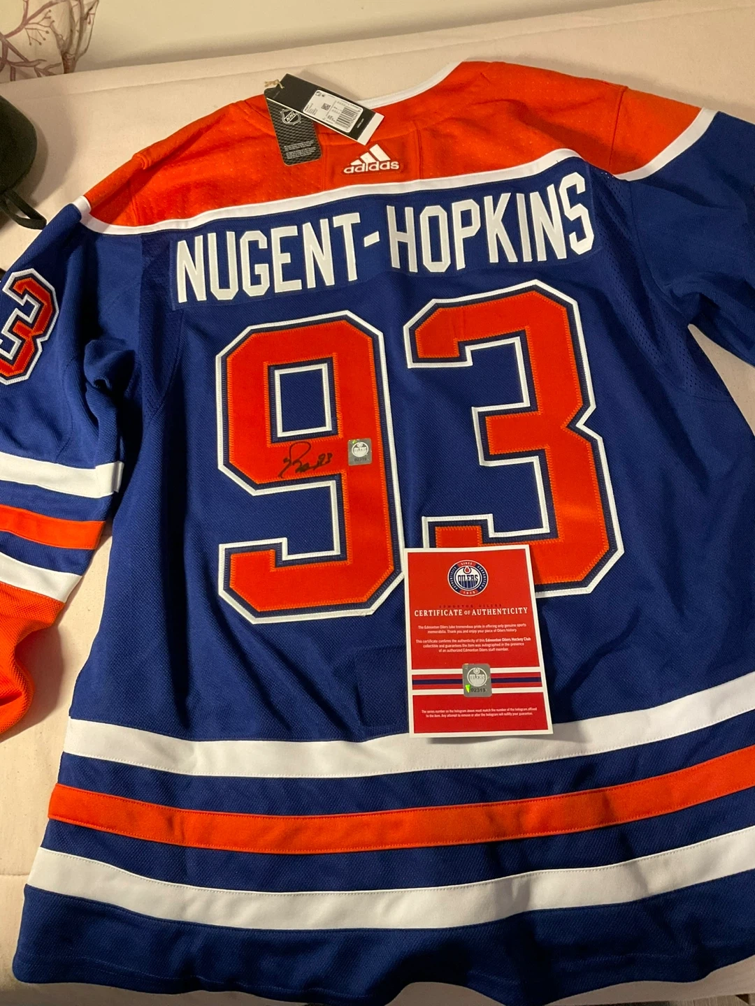Selling a signed Adidas Nugent-Hopkins Edmonton Oilers jersey! includes a certificate of authenticity. Perfect for any Oilers fan!