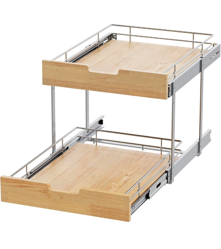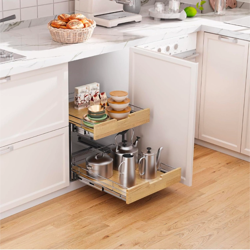 Selling a brand new Sikarou kitchen storage pull-out cabinet organizer! This handy organizer helps maximize your kitchen space with its two-tier design. It's perfect for keeping pots, pans, and other kitchen essentials neatly stored and easily accessible. The instruction manual is included!