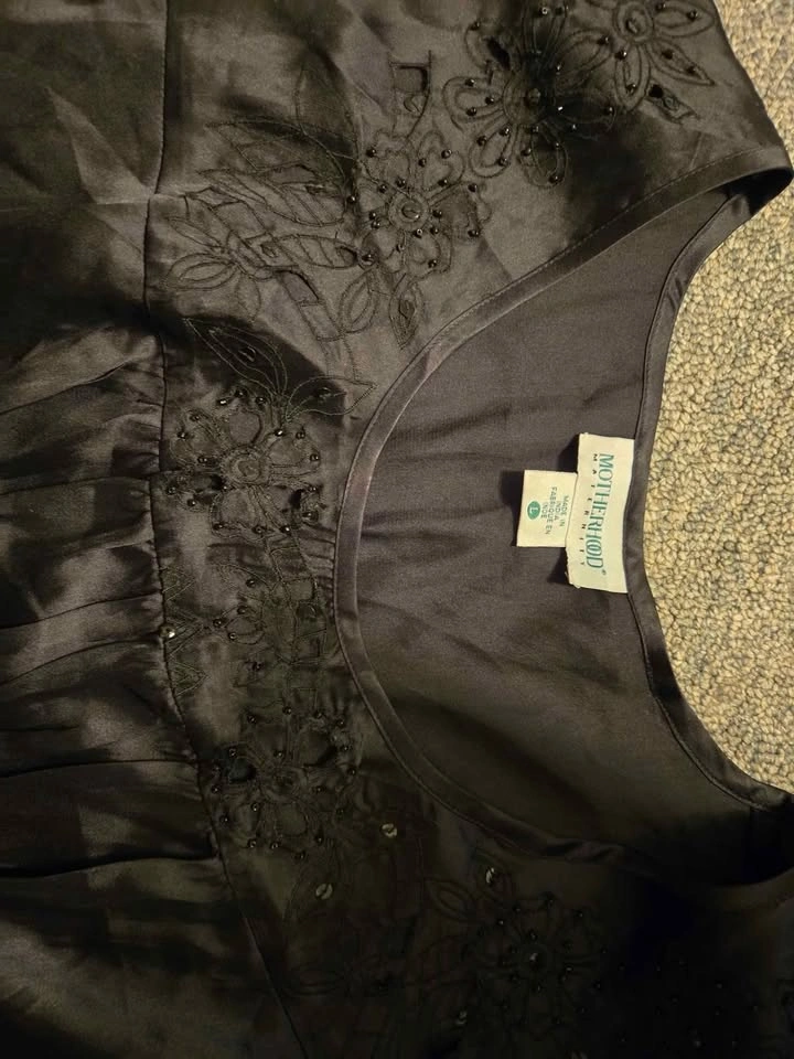 Black silky maternity blouse with beading. Really gorgeous. Size L. $7 Pick up in Chicopee.