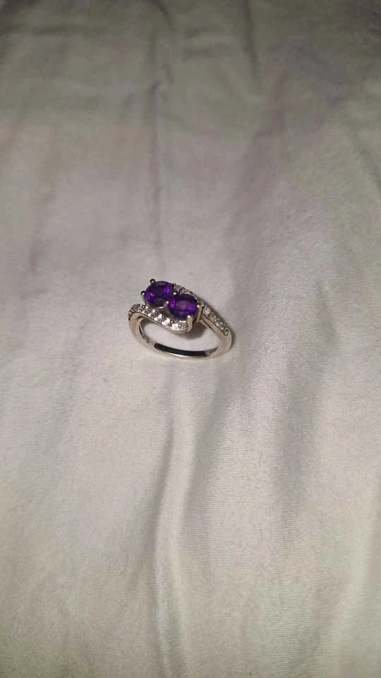 Ben Moss silver and amethyst ring. The side stones are white topaz. Size 6. Originally $180.